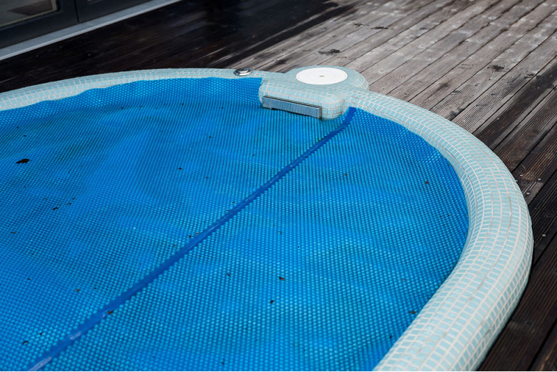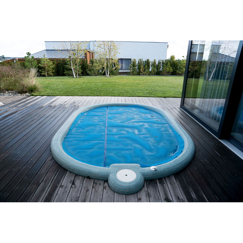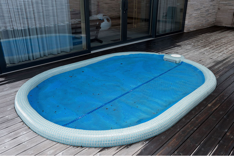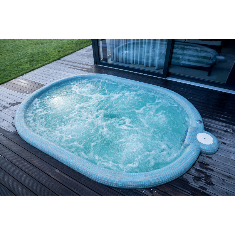 Baseins ir aprīkots ar masāžas ūdens strūklām, zemūdens LED RGB apgaismojumu un baseina aizkaru, lai novērstu netīrumu iekļūšanu baseina ūdenī.