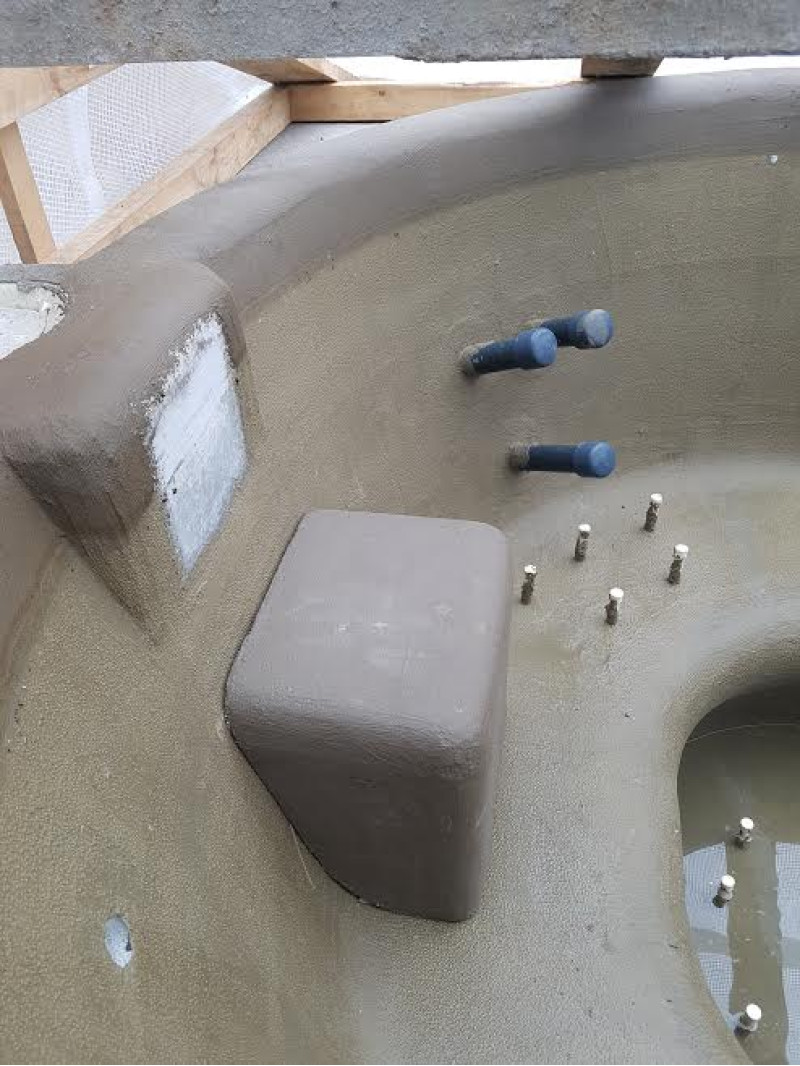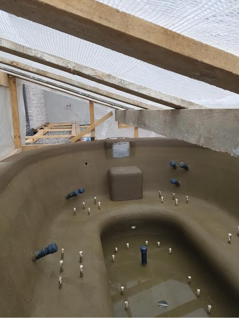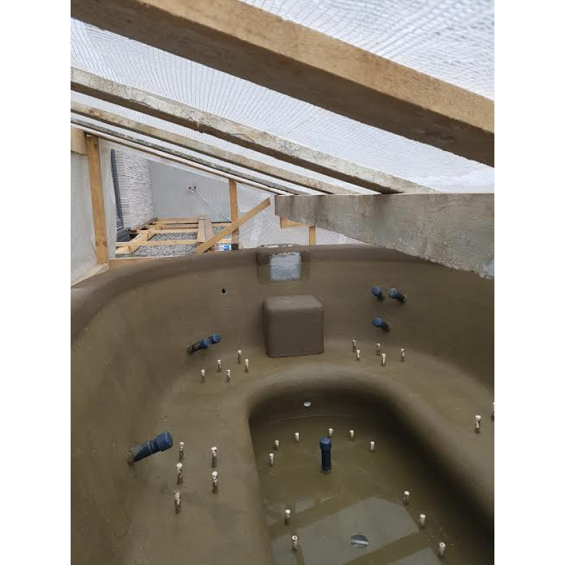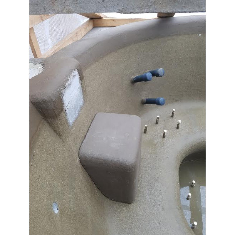 Baseinu veidnes tiek izgatavotas no speciāla ekstrudēta polistirola, pēc individuāla pasūtījuma. Iekštelpu klāj šķembas stikla mozaīkas flīzes.