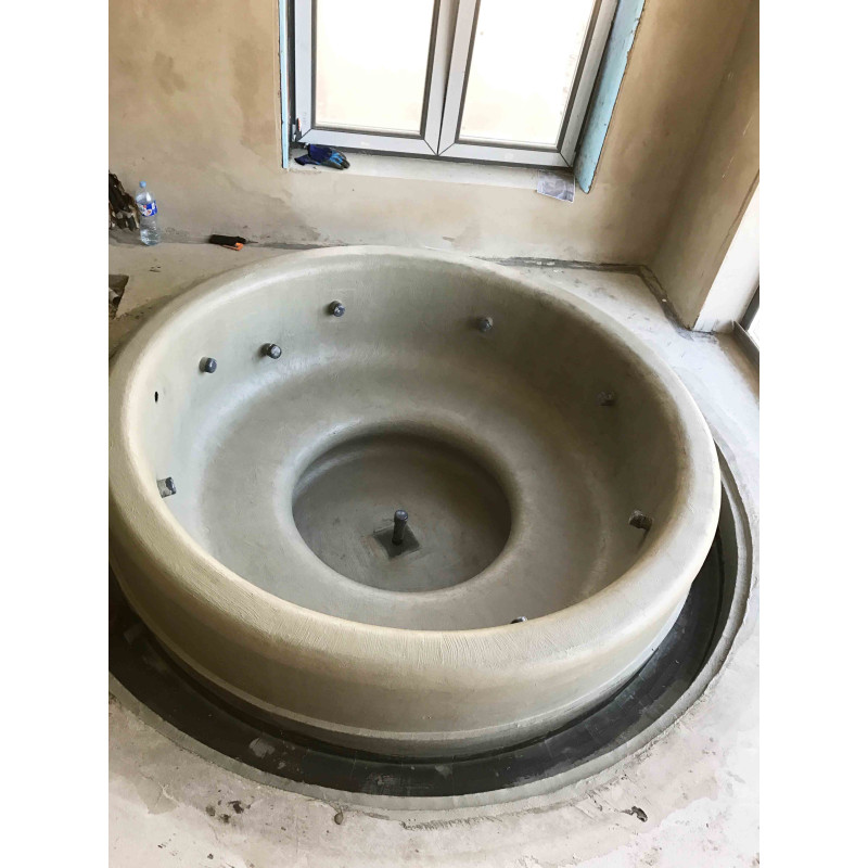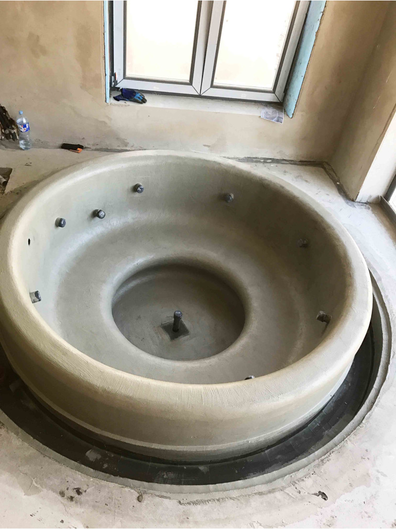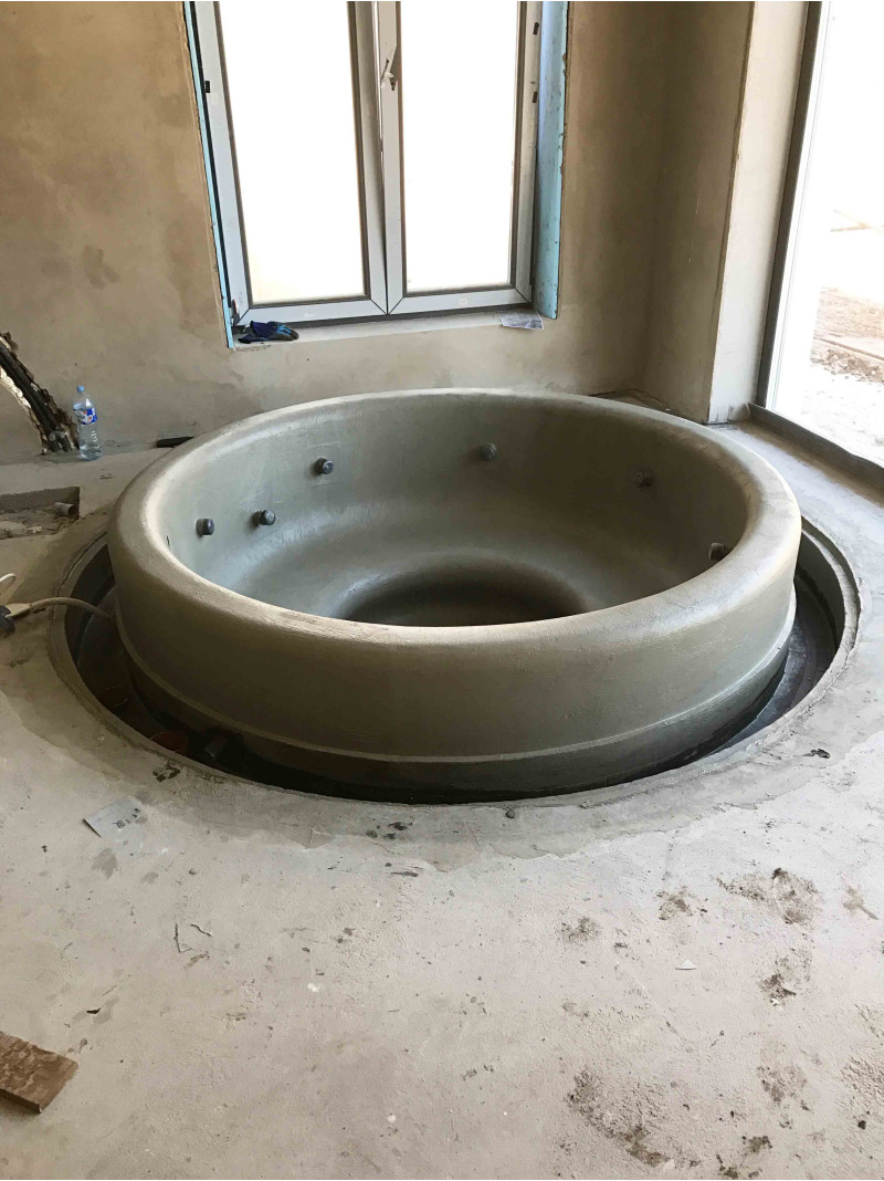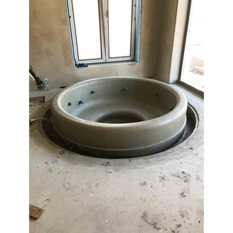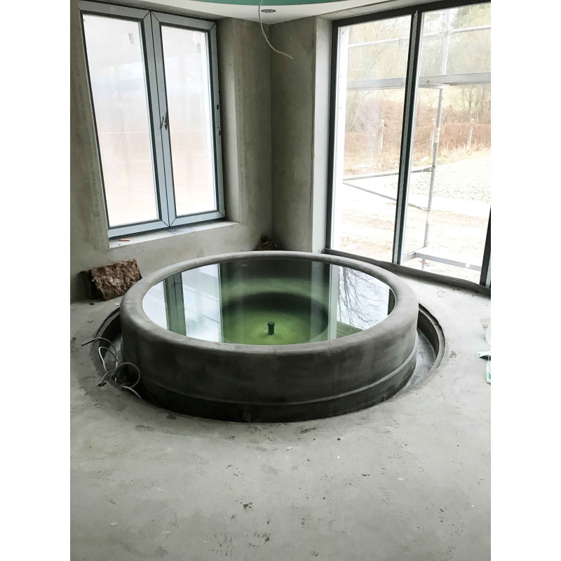 Baseins ir apaļas formas, ar sēdvietām ap visu baseinu. Baseina iekšējās virsmas tika veidotas, izmantojot nepārtrauktas griešanas XPS 300 polistirolu. Tas ir ārkārtīgi izturīgs un mitruma un spiediena izturīgs materiāls.