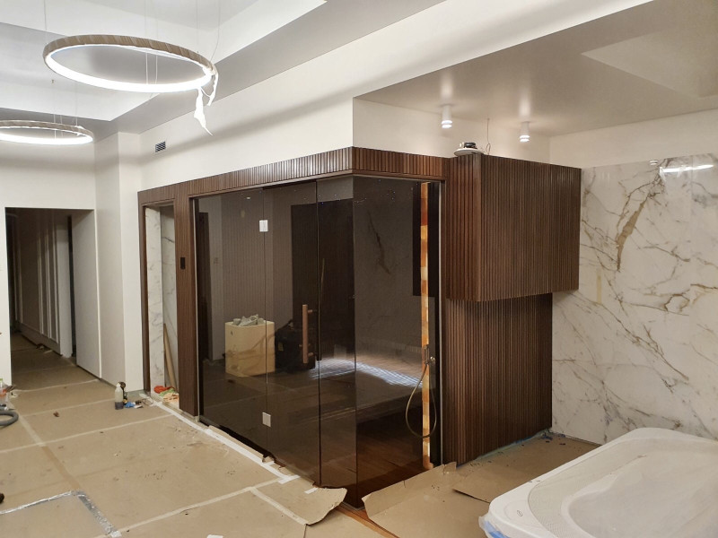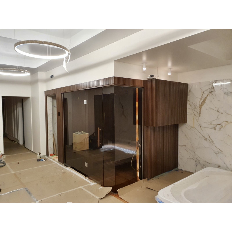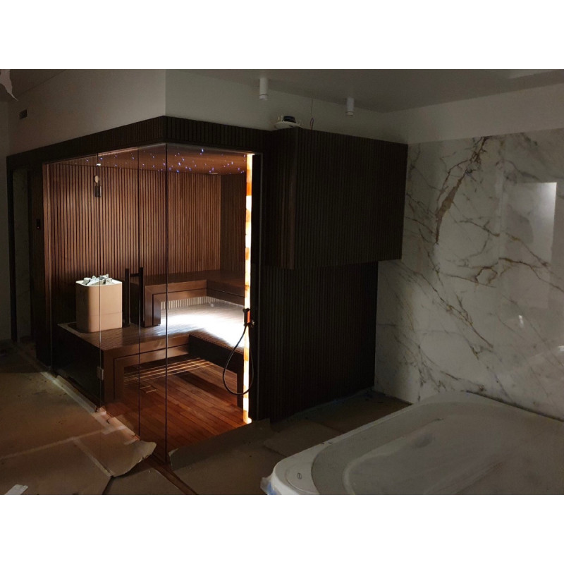 Viļņā tika īstenots individuāls pirts projekts. Izvēlēta laima koks, kas pārklāts ar dabīgo vasku ar krāsu. Balts sildītājs Tulikivi Kuura 2 ar atsevišķu turku pirts tvaika ģeneratoru (Harvia 4,5 kW), kas ievietots sildītājā. Šī sistēma rada ļoti lielu sekundārā mitruma daudzumu.