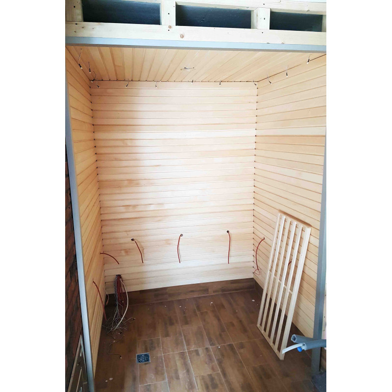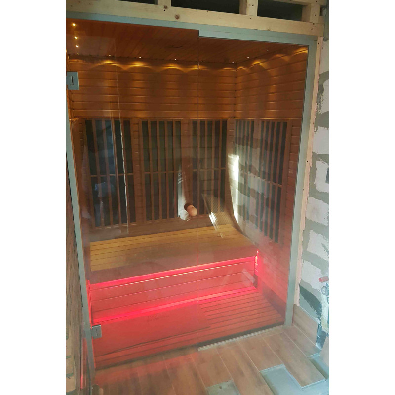 Pirts aprīkojums: Infrasarkanais sildītājs HARVIA CARBON ar aizsargrežģi, vadības panelis Harvia Griffin Infra CG170I. Šo paneli var izmantot, lai kontrolētu darbības laiku, temperatūru, apgaismojumu un ventilāciju. Ar taimeri var iestatīt, kad saunai jābūt gatavai. Hromētais digitālais vadības panelis ir lieliski savietojams ar citu modernu pirts aprīkojumu.