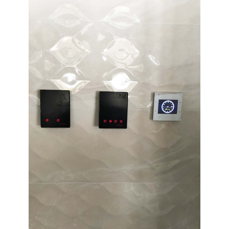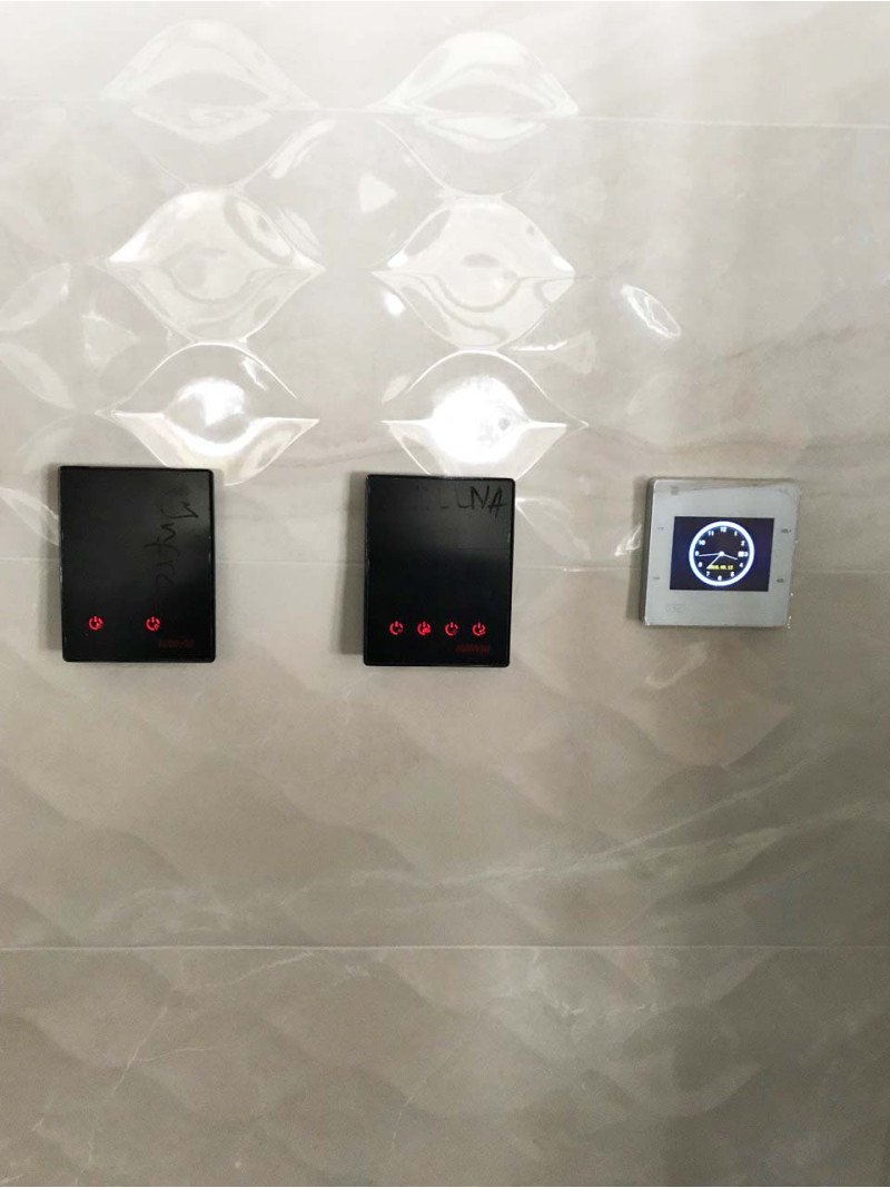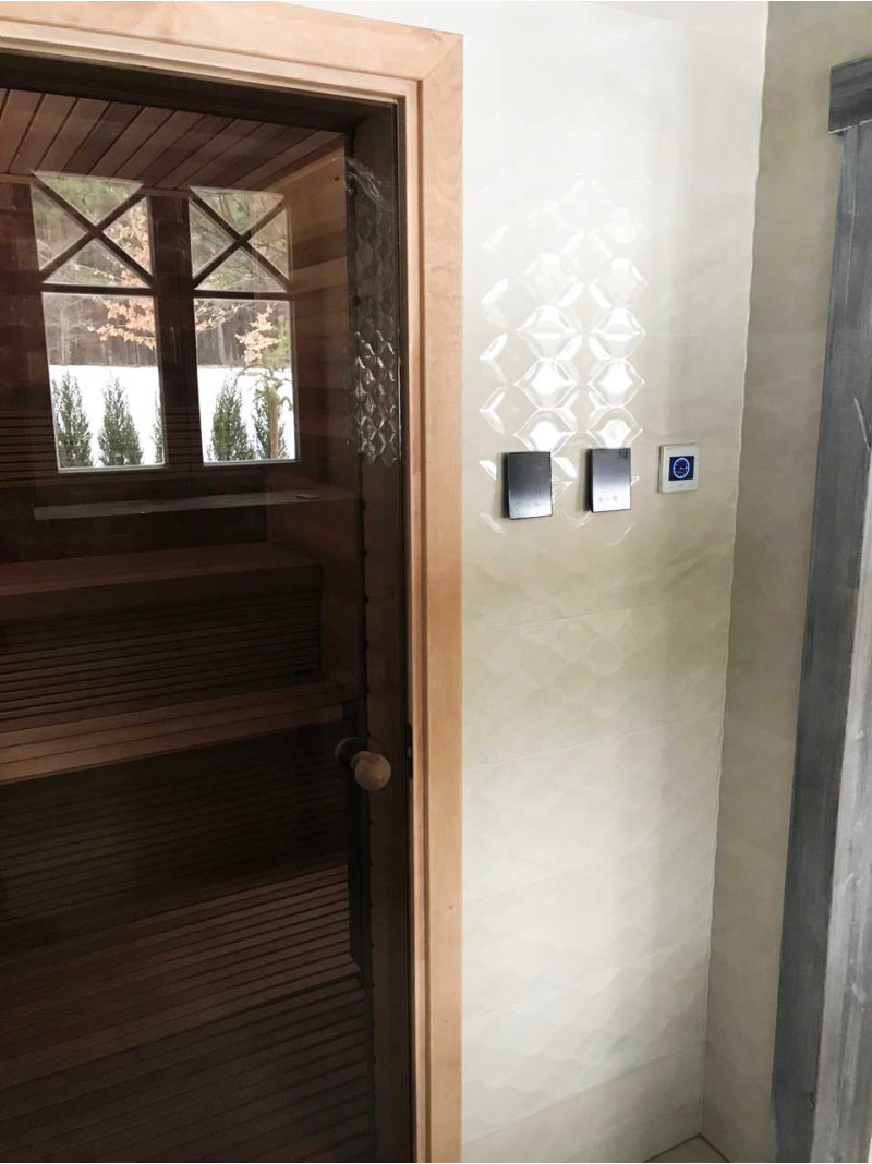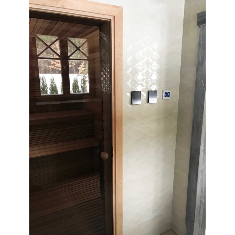 - Mūzikas centrs, iebūvēts sienā ar krāsainu LCD ekrānu. Piemērots lietošanai pirtī. Komplektā ar mitrumu un karstumu izturīgiem skaļruņiem. Darbojas ar pogām vai tālvadības pulti.