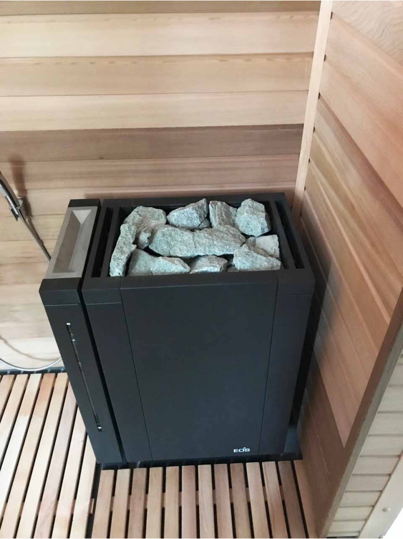 - Elektriskā ekskluzīva dizaina krāsns EOS Mythos S45 Tvaiki ar tvaika ģeneratoru. Krāsnī var ievietot līdz 45 kg nefrīta akmeņu. Šis daudzums ir pietiekams, lai uzturētu nemainīgu temperatūru un ērti izbaudītu saunu. Ērta apkope - akmeņi nepieskaras sildelementiem. Tos var nomainīt, nenoņemot akmeņus.