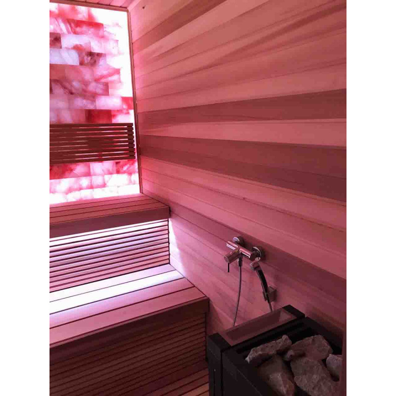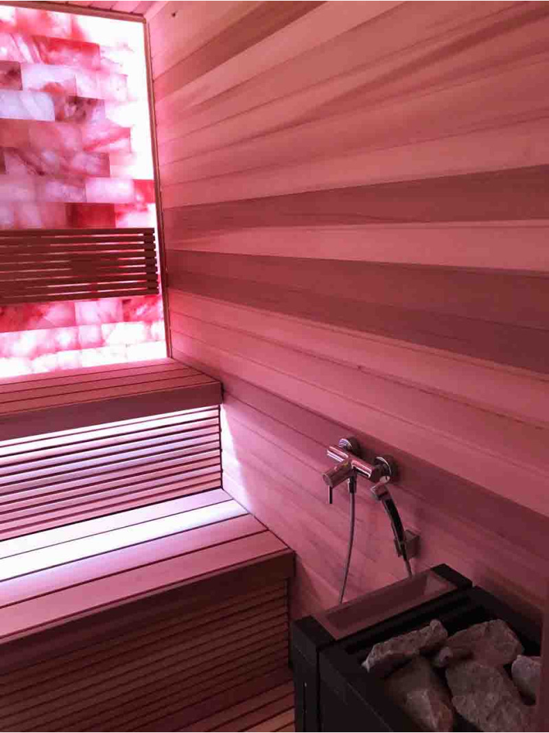 Gaisa kvalitāti un saunas sajūtas ievērojami uzlabo Himalaju sāļu lielā siena. Izdalītie negatīvie joni uzlabo veselību, palīdz pārvarēt daudzas kaites, piemēram: bronhiālo astmu, plaušu un bronhu slimības, postinfarktu, hipertensiju, kuņģa -zarnu trakta čūlas, gastrītu, vairogdziedzera slimības, dermatītu, dažādas alerģijas, nervu slimības, palīdz pārvarēt stresu. Procedūru veikšanas priekšrocības šādā pirtī ir divējādas.