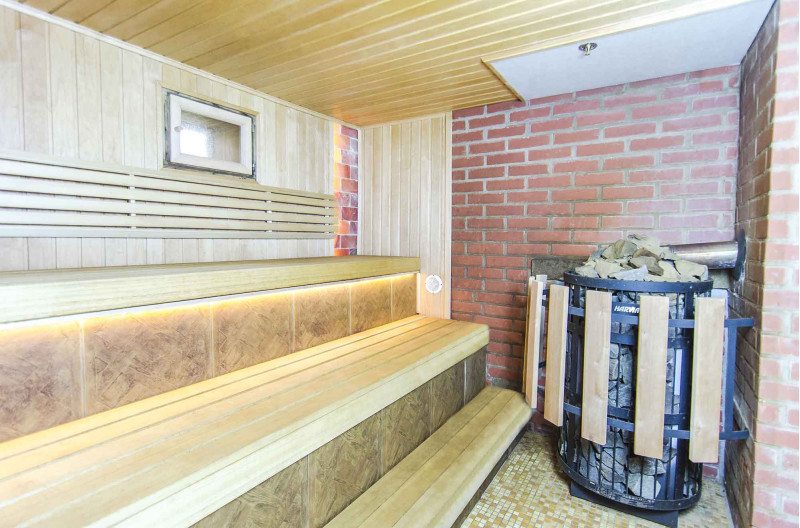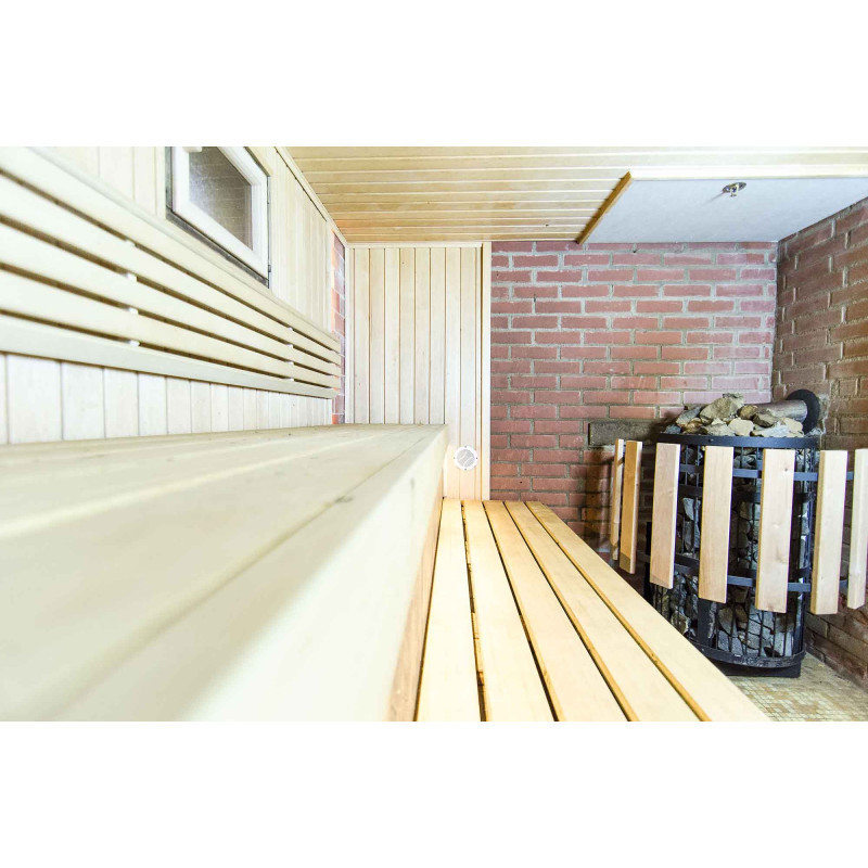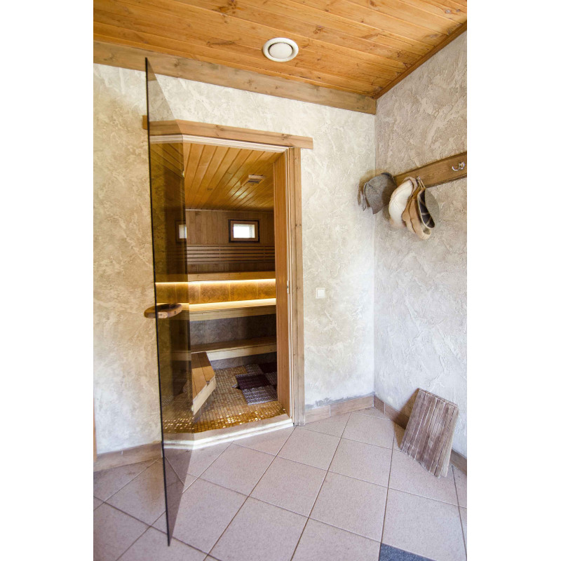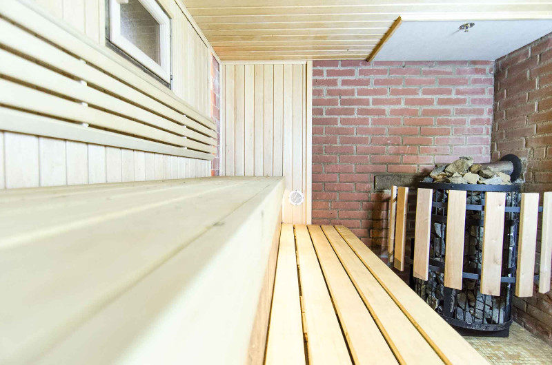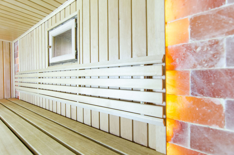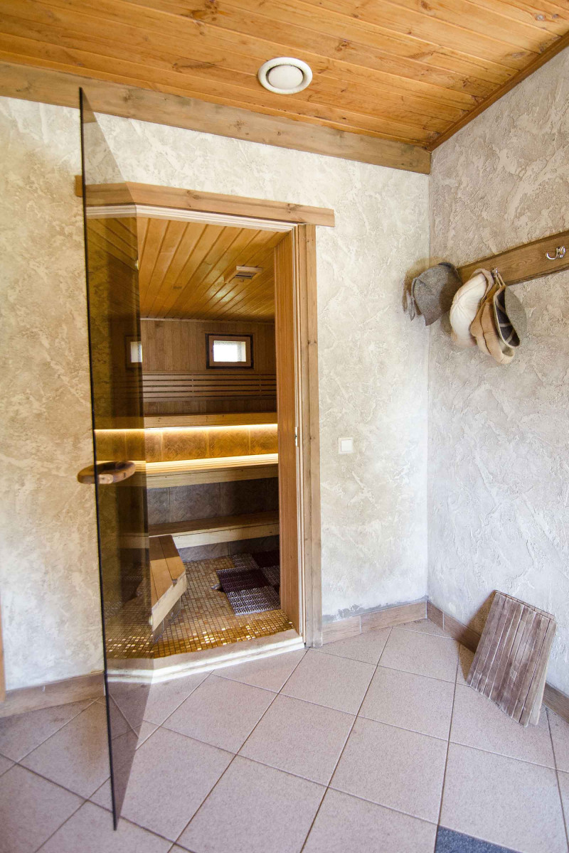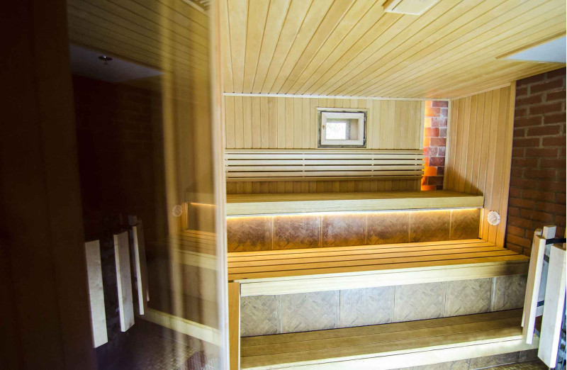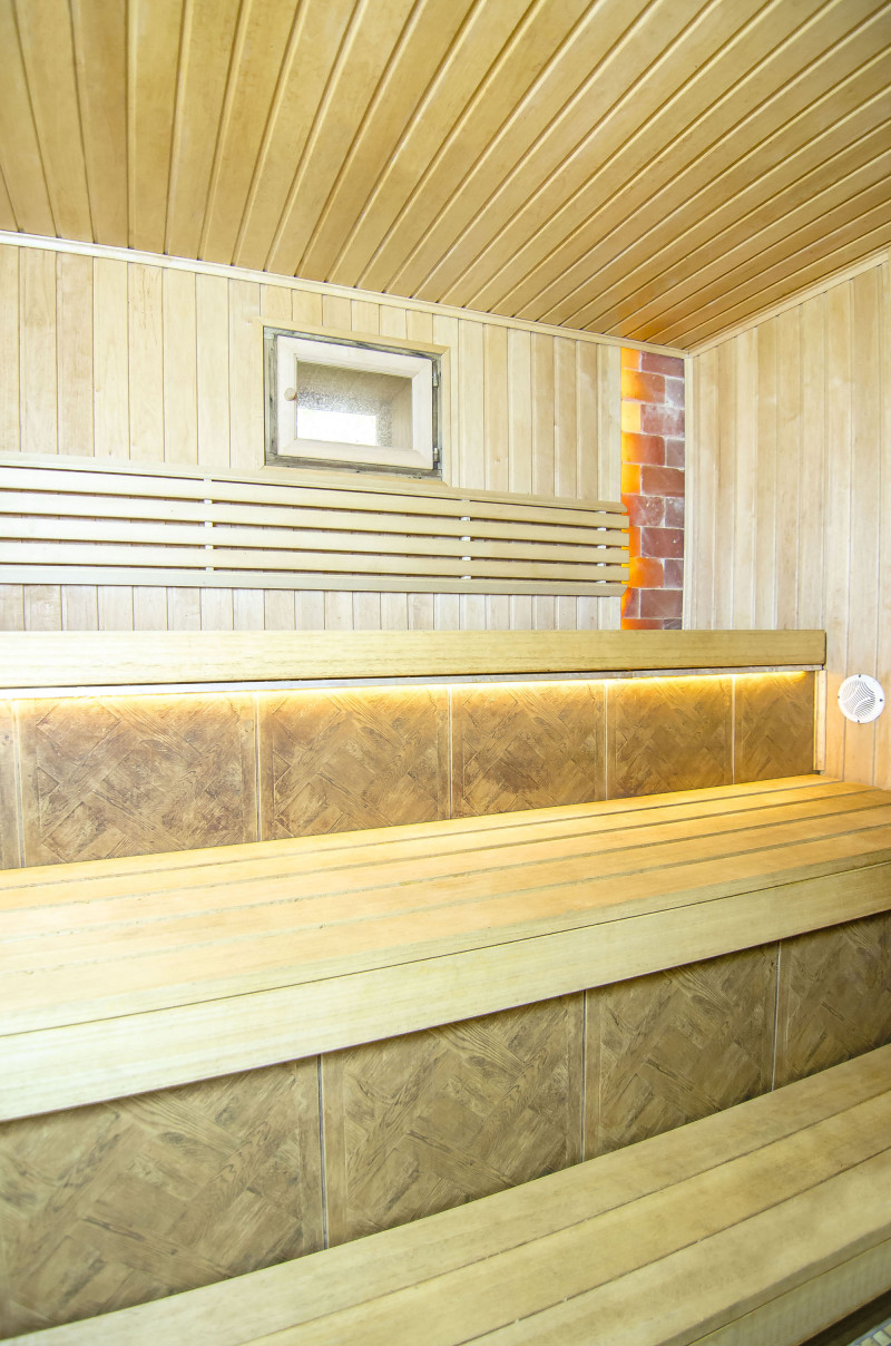 Sienām un griestiem izvēlēts plats melnalkšņa apšuvums. Soliņi tika izgatavoti no kvalitatīva nesildoša abača koka, tāpēc uz šādiem soliem ir patīkami sēdēt vai gulēt, neapdedzinot ādu. Zem soliem uzstādīts LED apgaismojums.