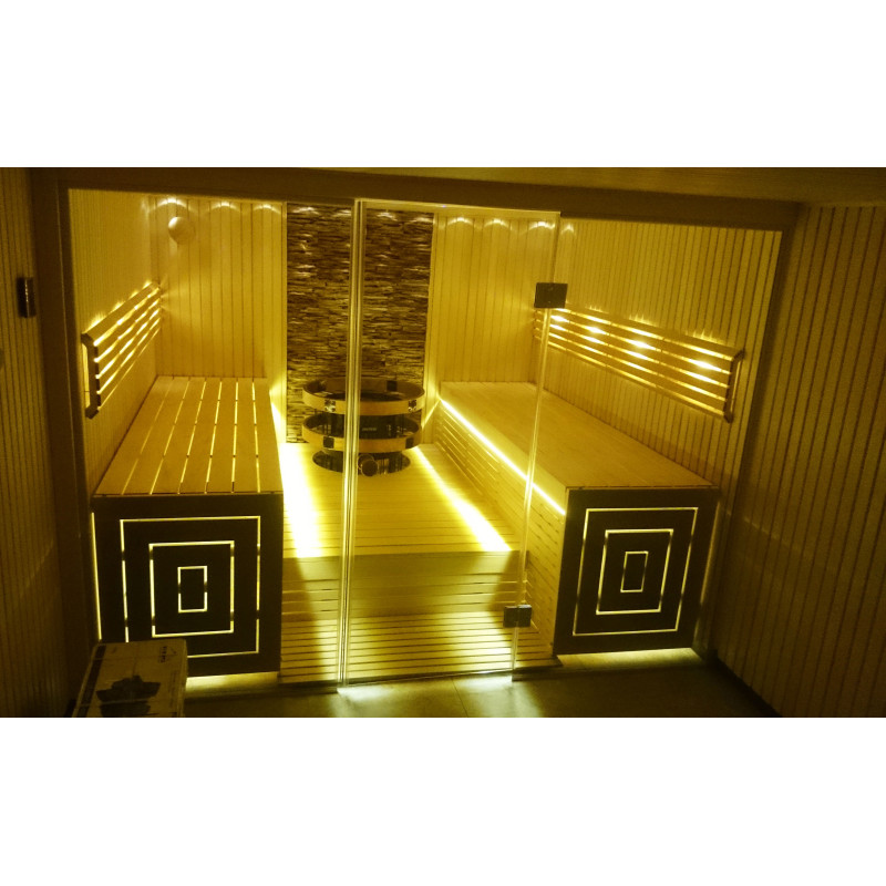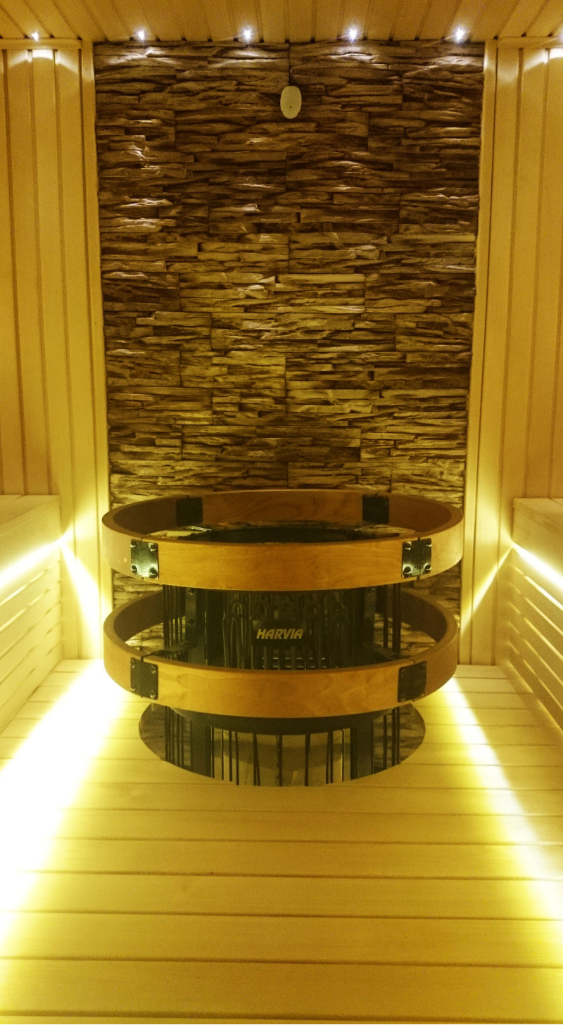 Sildītājs - Harvia Legend, kas dod daudz tvaika. Piepildīts ar lielu daudzumu olivīna diabāzes akmeņu. Sildītāju kontrolē digitālā Griffin konsole, kas var iestatīt temperatūru līdz vienai precizitātes pakāpei.