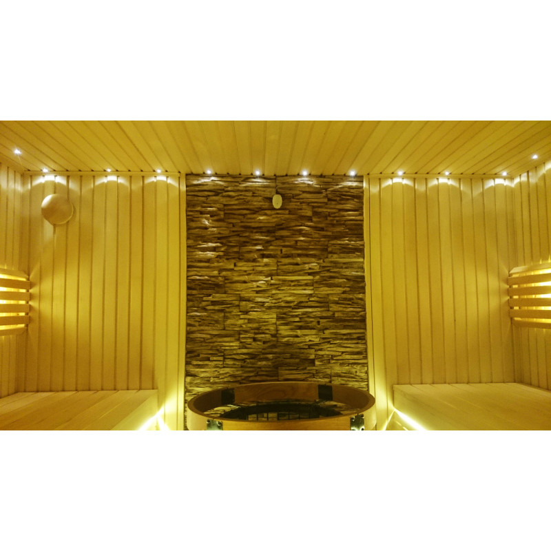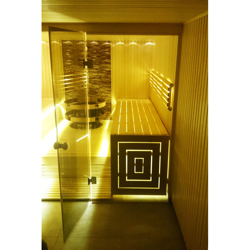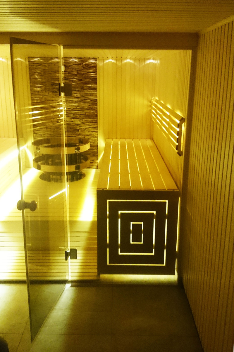 Briselē ir sauna, kas izceļas ar savu dizainu un tehniskajiem risinājumiem. Tika piedāvāts individuāls, vietu taupošs projekts gan nelielām pirts, gan vannas istabām. Pirts krēsli ir uzstādīti uz pjedestāla, vērsti viens pret otru, radot lielisku komunikācijas atmosfēru. Plīts ir iebūvēta grīdā ar aizsarggredzeniem. Dekoratīvā ķieģeļu siena ir ekskluzīvs akcents, radot mājīgu, oriģinālu vidi. Stikla vitrīna optiski palielina telpu un papildina ultramoderno pirts stilu.