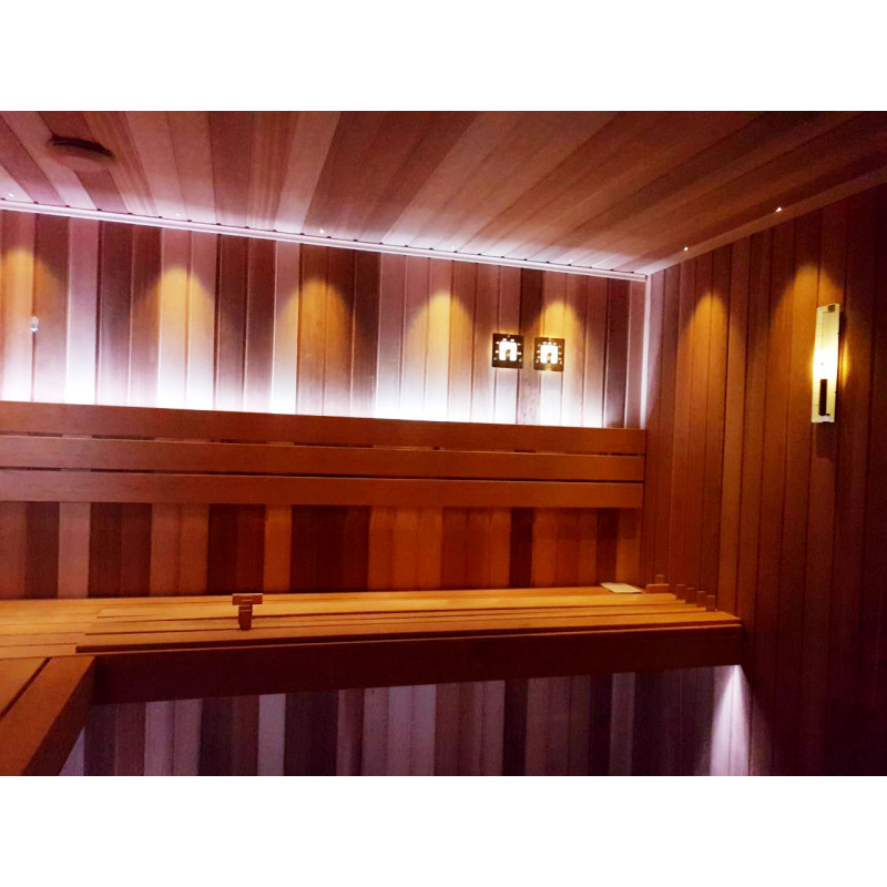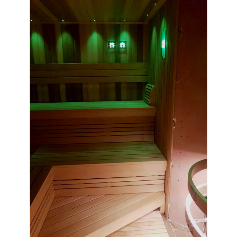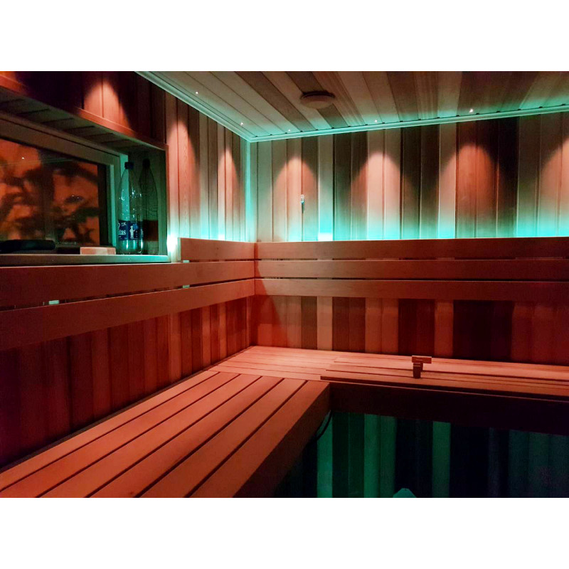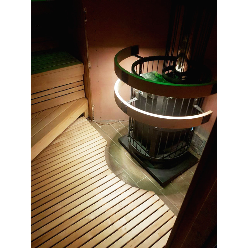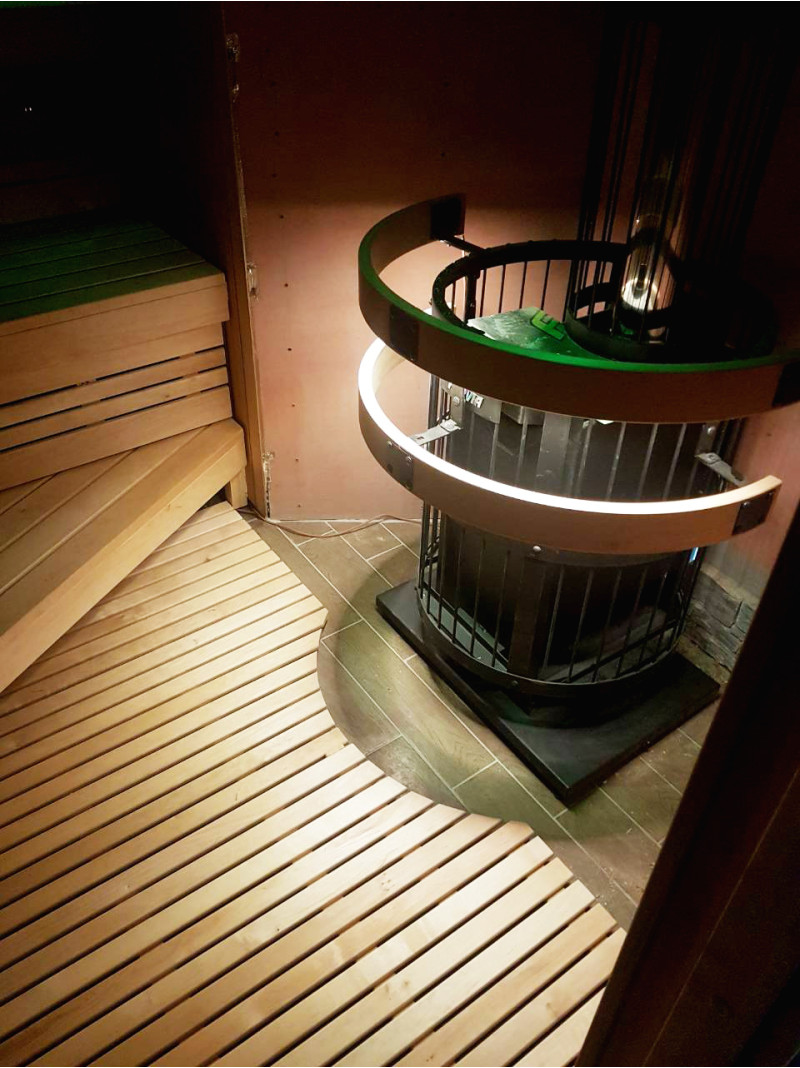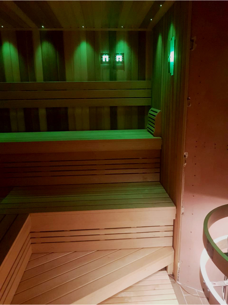 Stilīgam pirts apgaismojumam: Cariitti optiskās šķiedras apgaismojuma projektors, lampas zem atzveltnēm un soliem un izgaismoti termometri. Gaismekļi var mainīt krāsas – atkarībā no Jūsu vēlmēm un noskaņojuma.