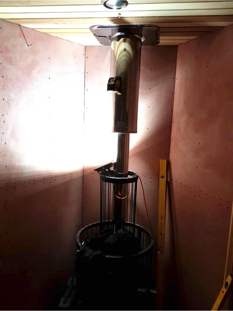 Uzņemšanas zonā atvēsinoties pēc pirts iekarināts ozolkoka, 20 l, auksta ūdens liešanas kubls. Tas ir lielisks un vienkāršs veids, kā atjaunot spēkus.