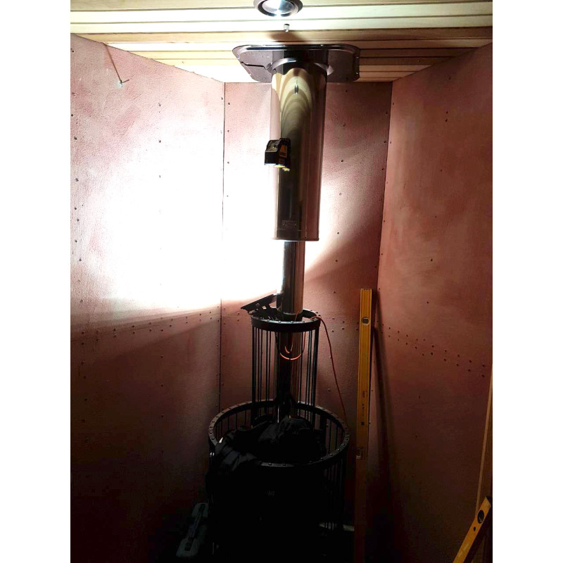 Ir izvēlēta Harvia Legend 240 DUO malkas krāsns ar ārējo kurtuvi, čuguna durvīm un stikla logu, kas pildīts ar lielu daudzumu ziepjakmeņu, kas ļauj baudīt to izstaroto siltumu arī tad, ja nav augstas temperatūras. vidēja izmēra pirtij. Krāšņu korpusi - Harvia Legend ar apgaismojumu.