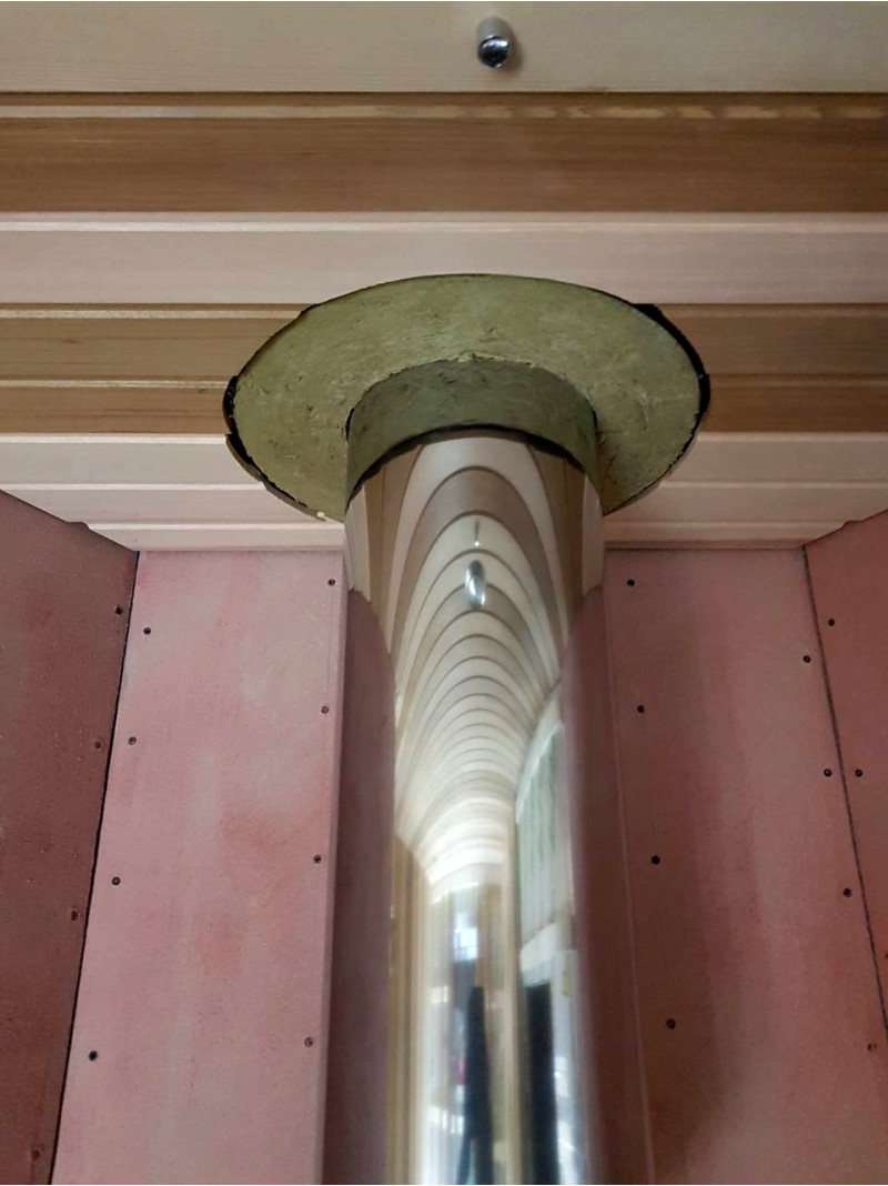 Pirts augstās izturības dēļ izvēlēta alkšņa un Kanādas ciedra koksne. Ciedram ir tendence absorbēt vismazāko siltuma daudzumu, kas pirtī piešķir lielāku komfortu.