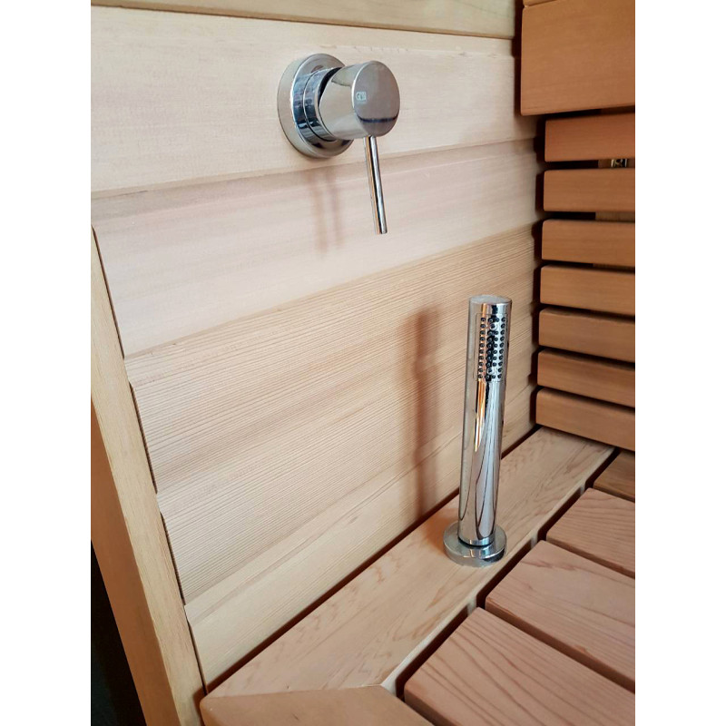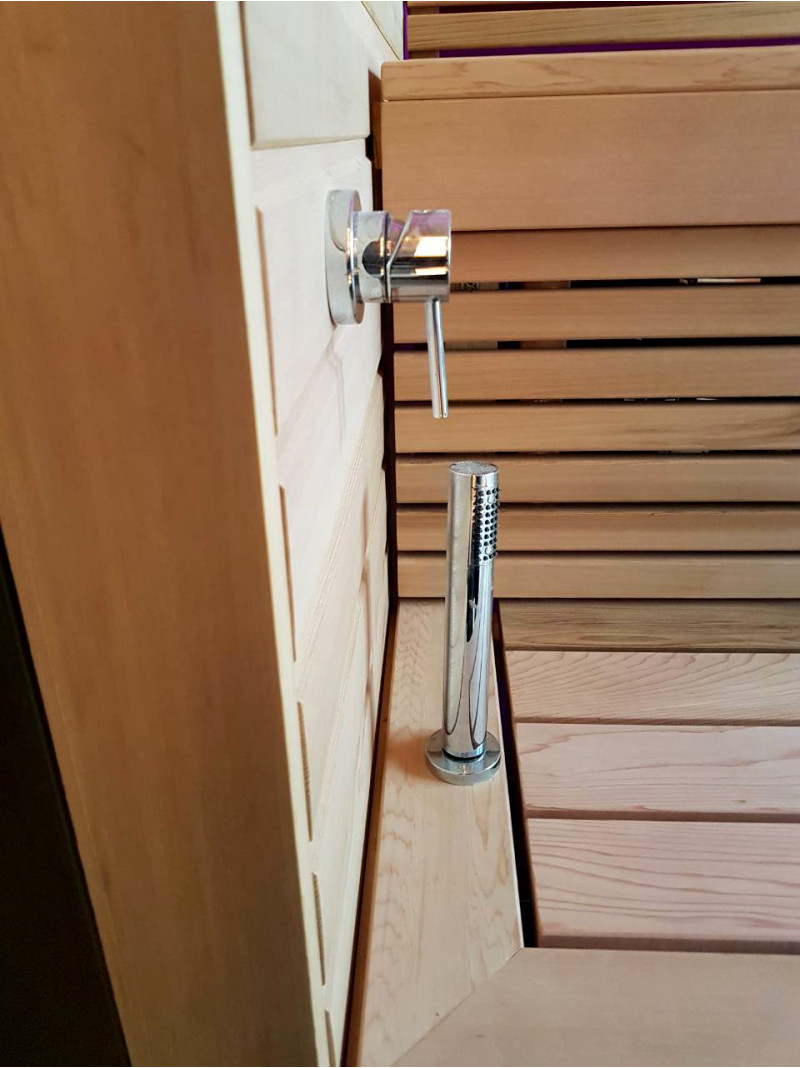 Pirts ir aprīkota ar skaļruņiem, kas ir izturīgi pret karstumu un mitrumu.