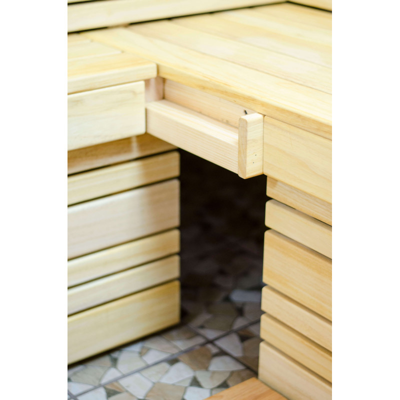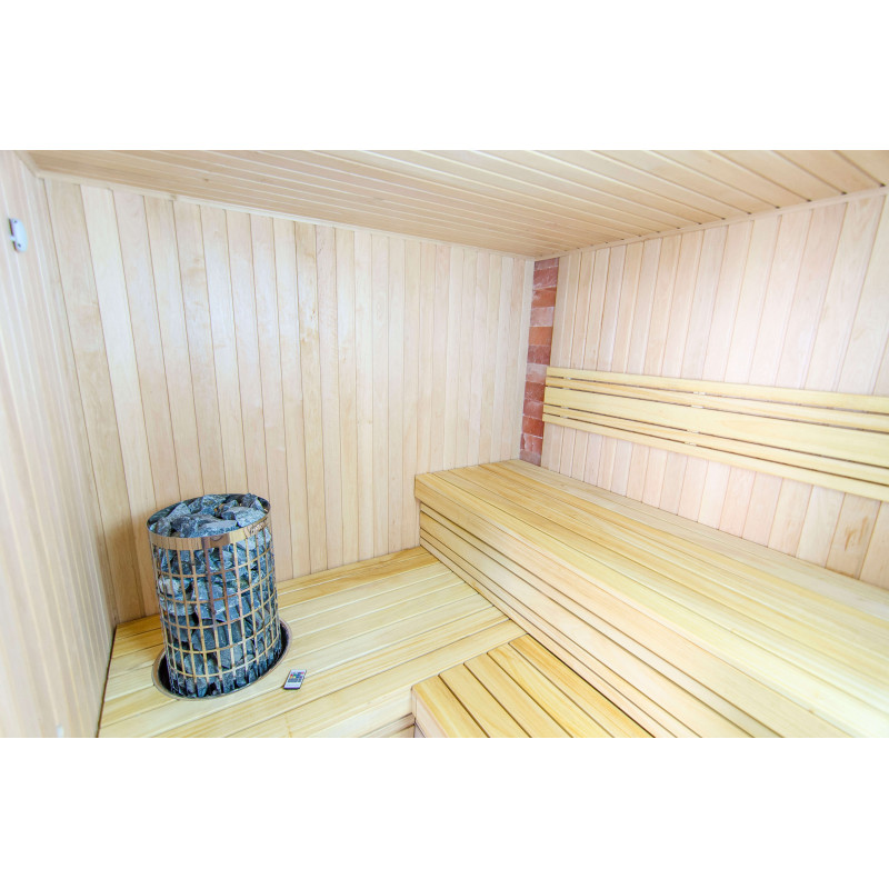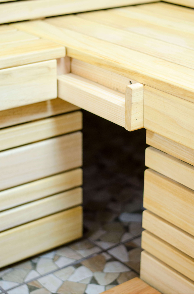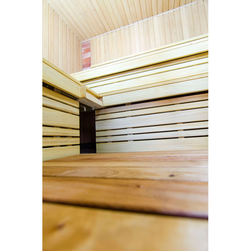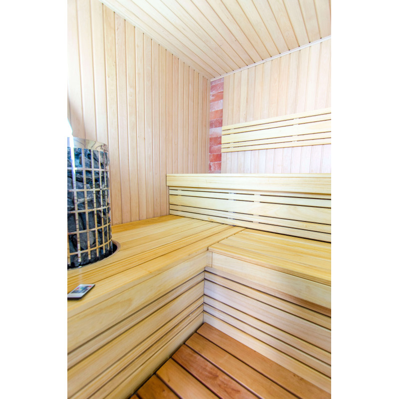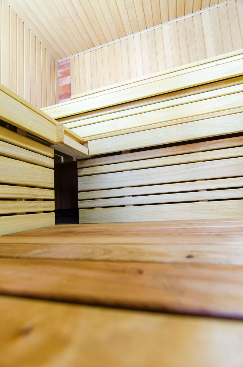 Soliņi, atzveltnes, griesti, sienas - no Āfrikas nesildošas augstas klases abači koka, grīdas restes - no melnalkšņa koka. Atzveltnēs un aiz Himalaju sāls ķieģeļiem ir iebūvēts krāsu RGB apgaismojums, ko kontrolē bezvadu krāsu maiņas konsole, kas akcentē Himalaju sāls raksturīgo izskatu.