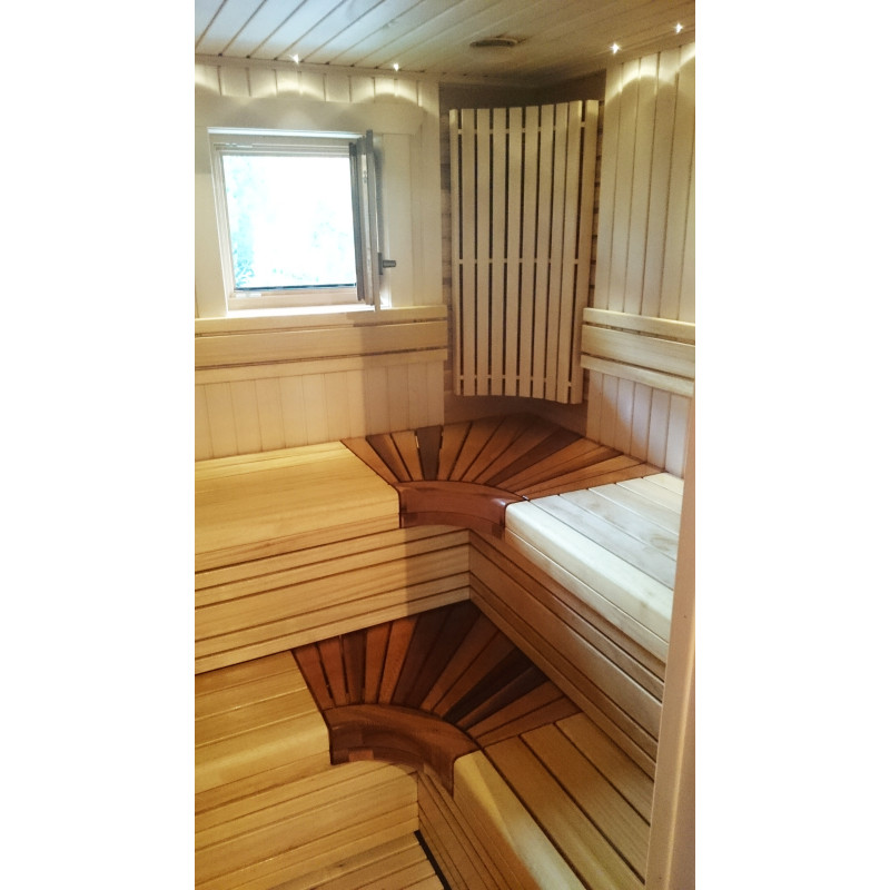 Pirts iekšpuse ir izgatavota no augstākās kvalitātes liepas un ciedra koka, soli izgatavoti no abachi un ciedra koka. Šī koksne ir vispiemērotākā soliņiem, jo tā maz uzsilst, tādai koksnei ir droši un patīkami pieskarties.