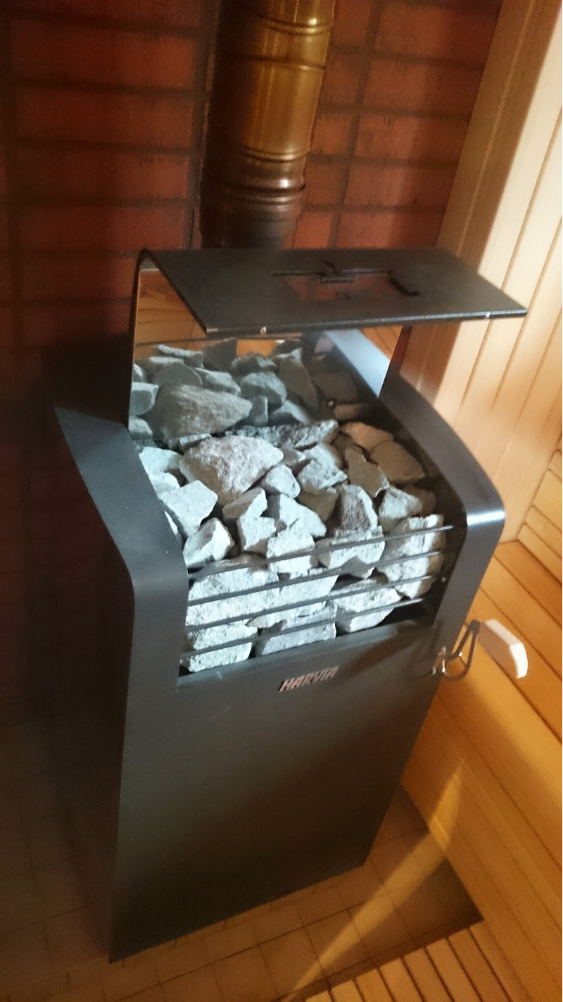 Pirtī tiek nodrošināta ventilācija, lai nodrošinātu pareizu gaisa cirkulāciju, un ierīkots skurstenis ar sildītāju. Sildītāja modelis ir slēgta tipa, kas akumulē siltumu un dod daudz tvaika. Karsēšanas laikā vāks tiek aizvērts, uzlejot ūdeni uz akmeņiem - tiek atvērts.