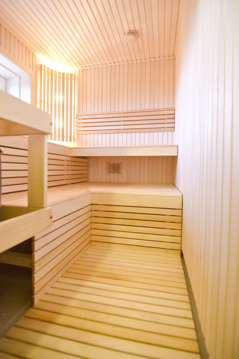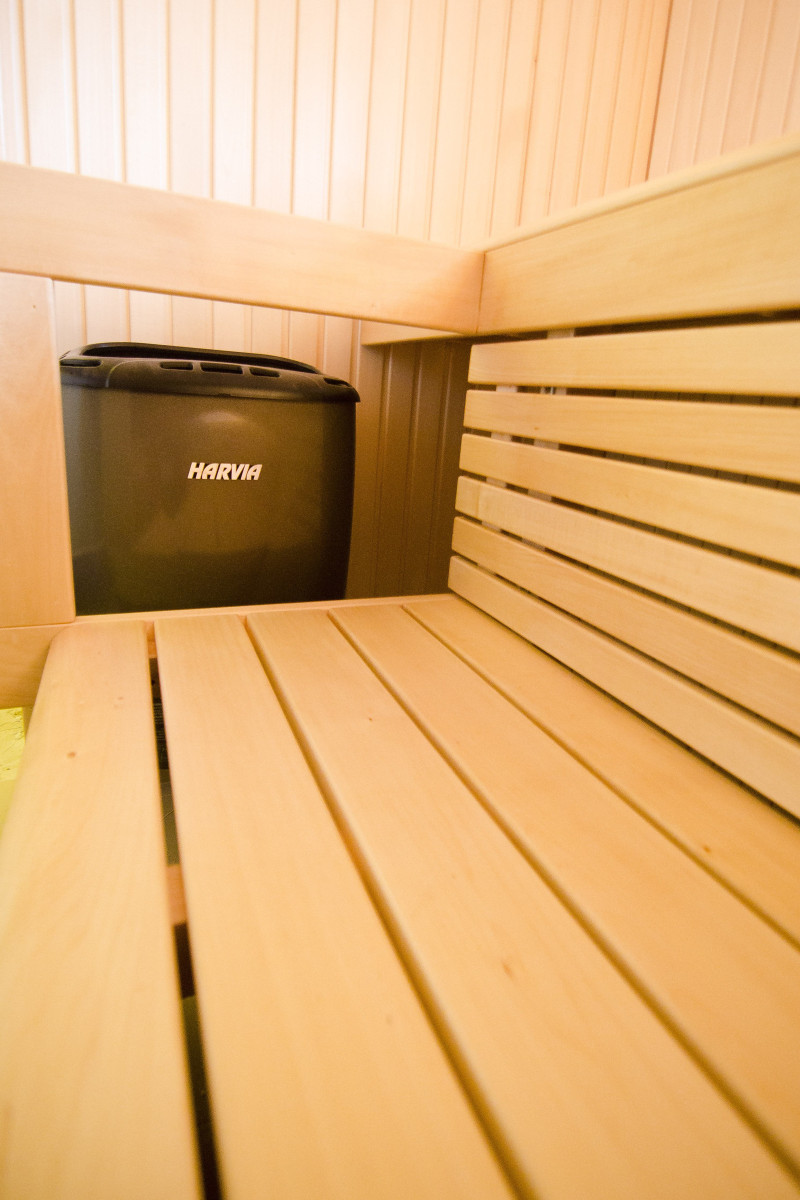 Apgaismojums - Harvia lampas, kas uzstādītas zem koka atzveltnes, nodrošina daļu no pirts relaksējošā efekta.