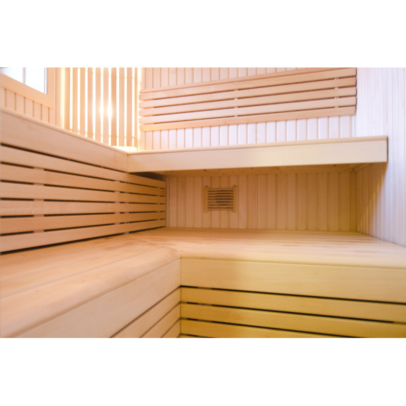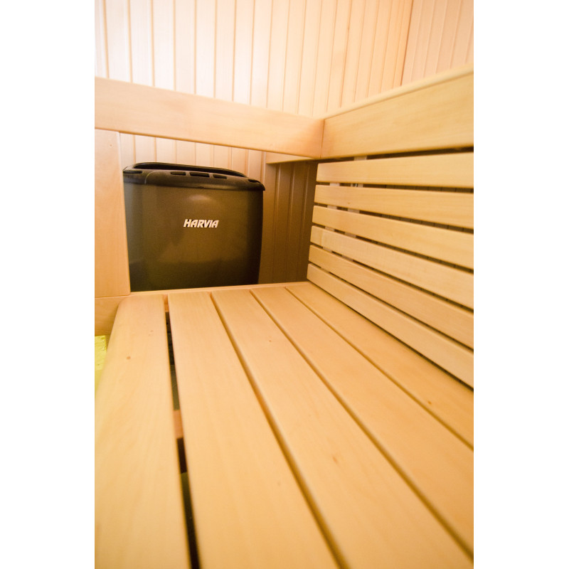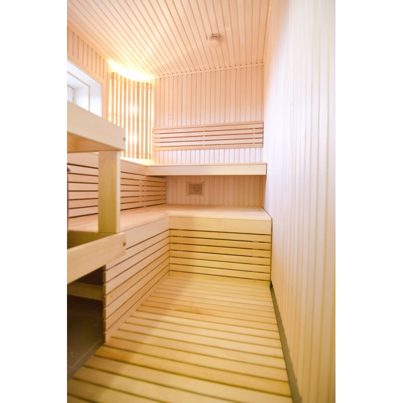 Sienu apšuvums un soliņi izgatavoti no augstākās kvalitātes liepas koka. Koksne ir īpaši viegla, piešķirot pirtī plašuma sajūtu.