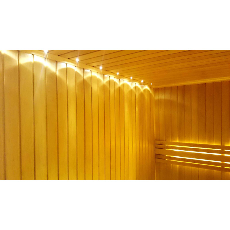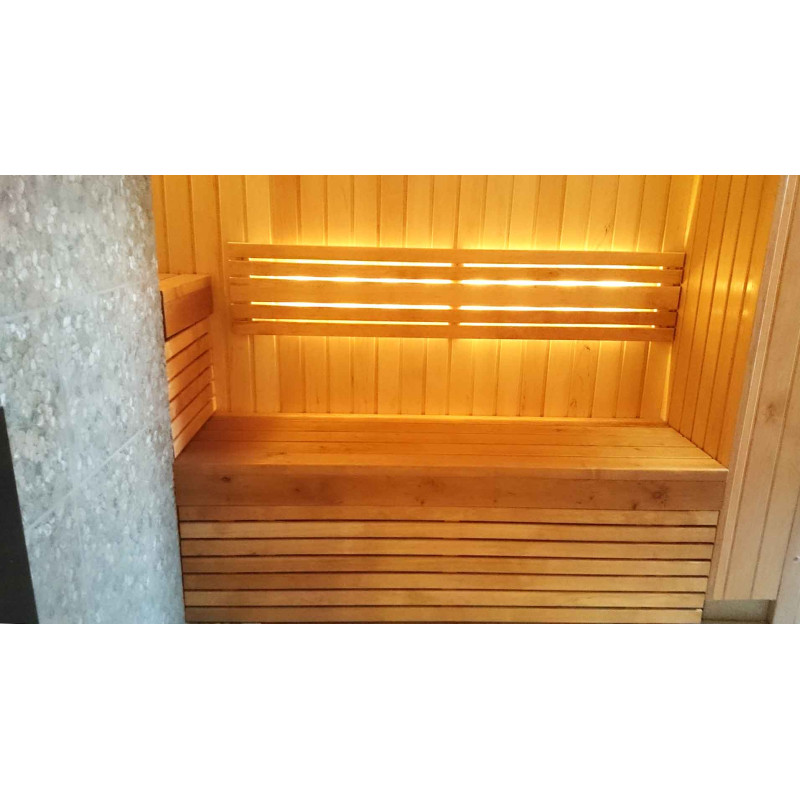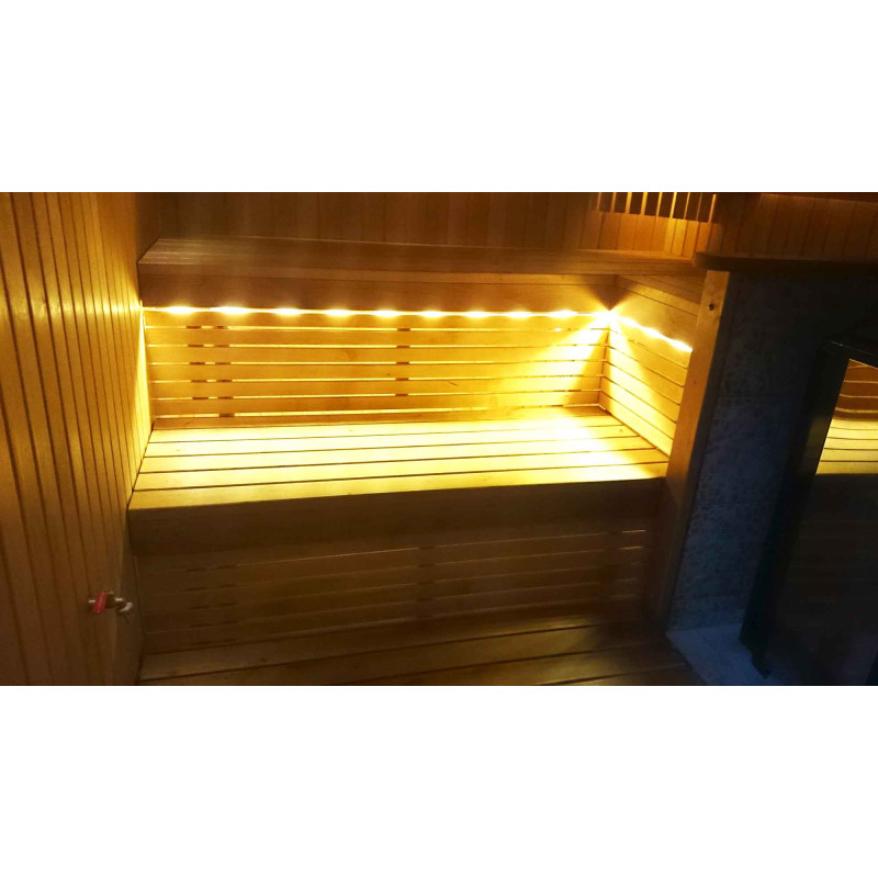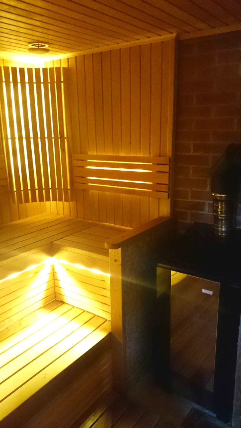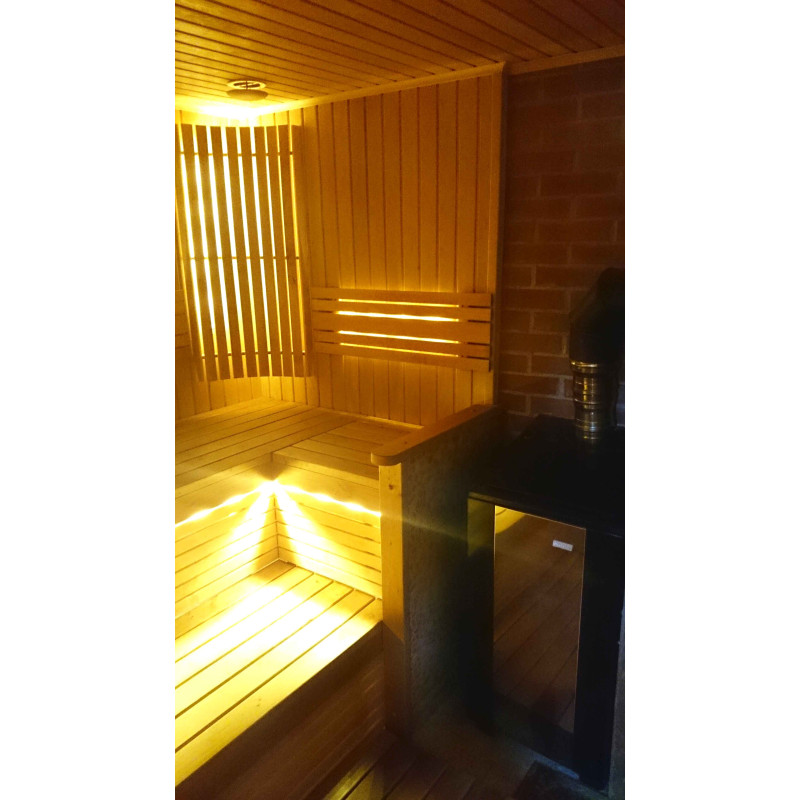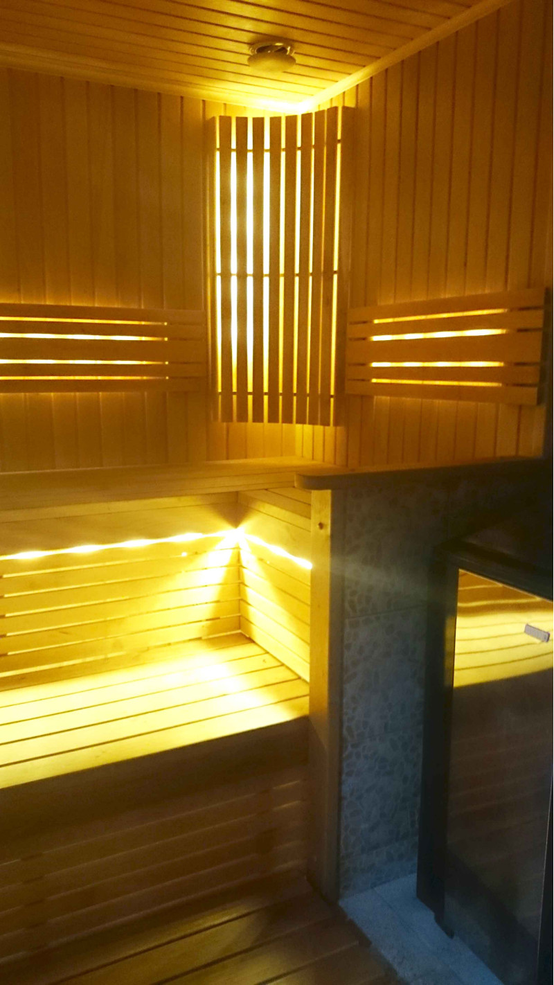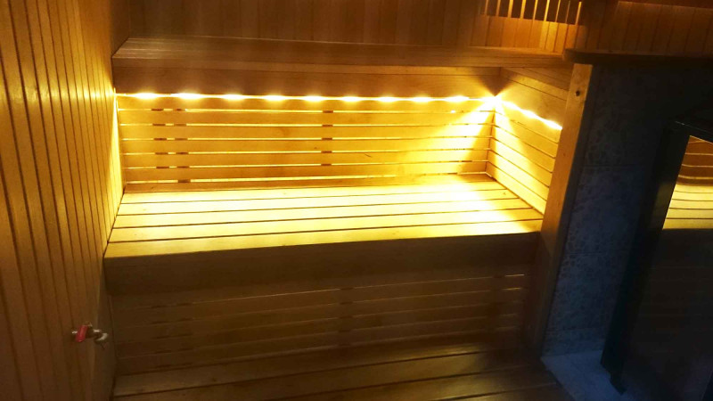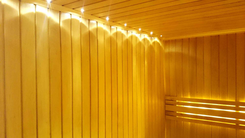 Pirts apgaismojums ir ļoti svarīgs elements, jo tieši apgaismojums nodrošina daļu no pirts relaksējošā efekta. Šī pirts ir aprīkota ar LED gaismām pie griestiem, zem krēsliem un atzveltnēm. Gaismekļi ir izturīgi pret mitrumu un augstu temperatūru.