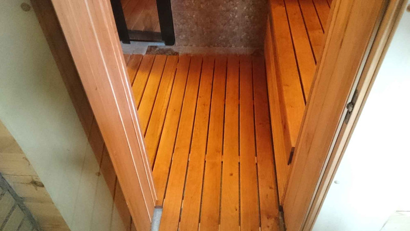 Iekšējā apdare - augstas kvalitātes melnalkšņa apšuvums. Melnalkšņa apšuvums lieliski pacieš lielas temperatūras atšķirības, neplaisā un nedeformējas. Sildināts izdala brīnišķīgu un vieglu dabīgā koka smaržu, kas sniedz komfortu pirts procedūrām. Melnalksnis karstā pirtī nesakarst, tāpēc saskarē ar virsmu nav iespējams piedegt.