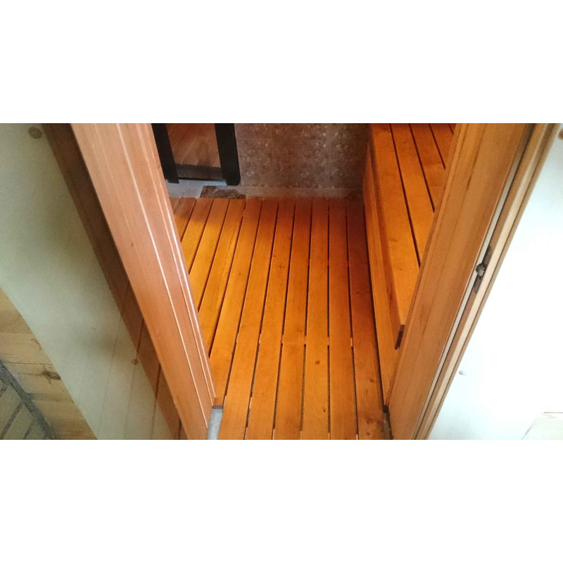 Pirts aprīkota ar intensīvai lietošanai piemērotu sildītāju - Narvi Steam Master. Jaudīgā ierīce notur līdz 100 kg akmeņu. Šis slēgtā tipa sildītājs uzkrāj siltumu un rada daudz tvaika. Siltums uzkrājas zem slēgta vāka lielos akmeņu daudzumos. Tādā veidā pirts nepārkarst un gaiss neizžūst. Uz akmeņiem lej ūdeni, atverot vāku.