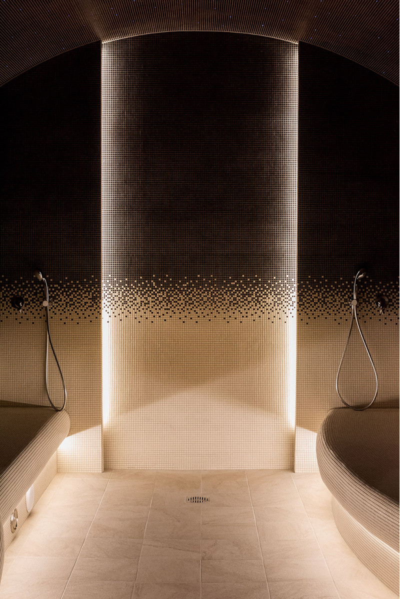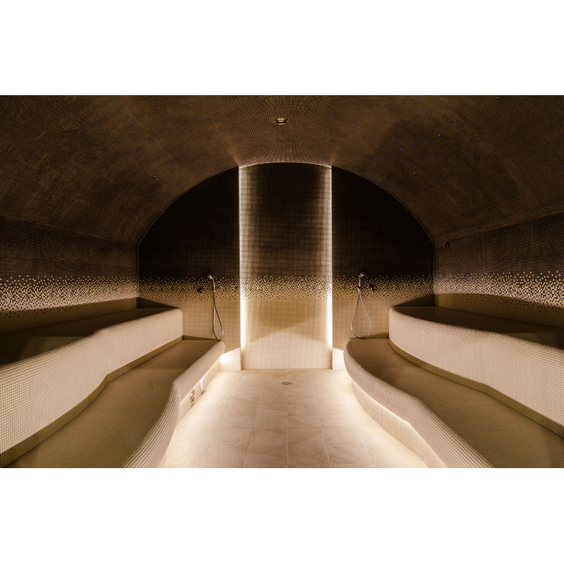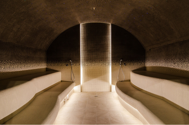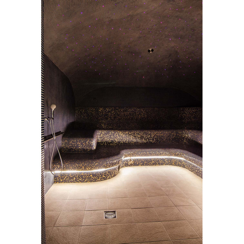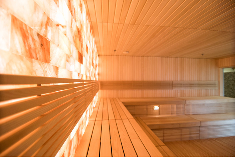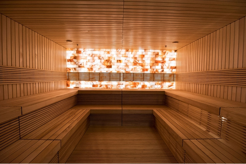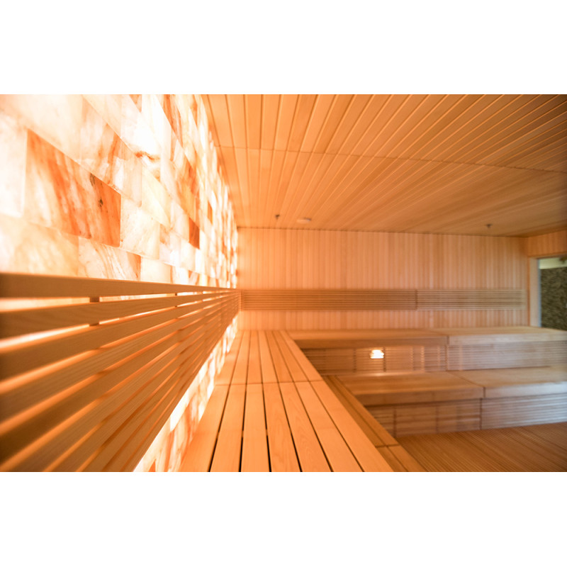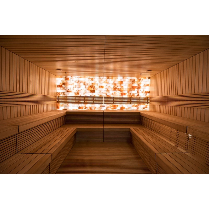 - Zem gultām ir uzstādīti mitruma un temperatūras izturīgi gaismekļi. Aiz Himalaju sāls sienas ir uzstādīts LED apgaismojums.