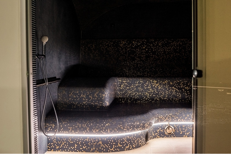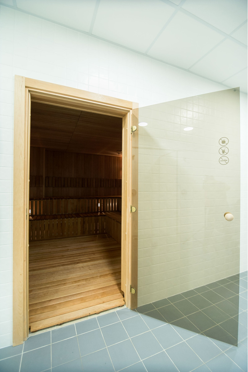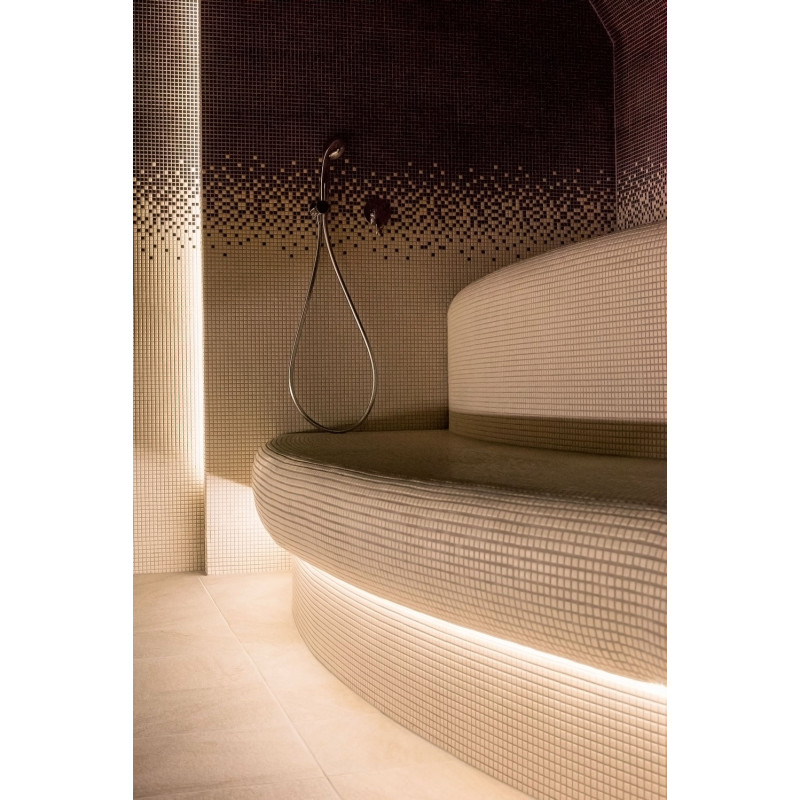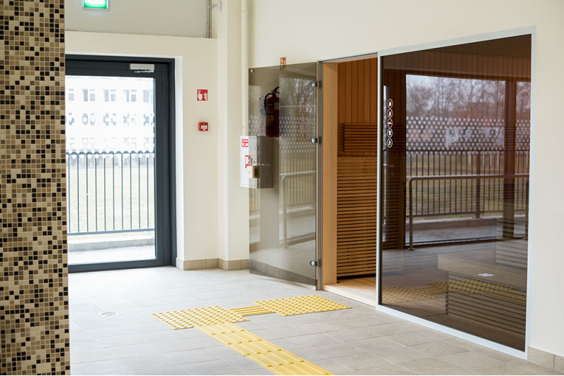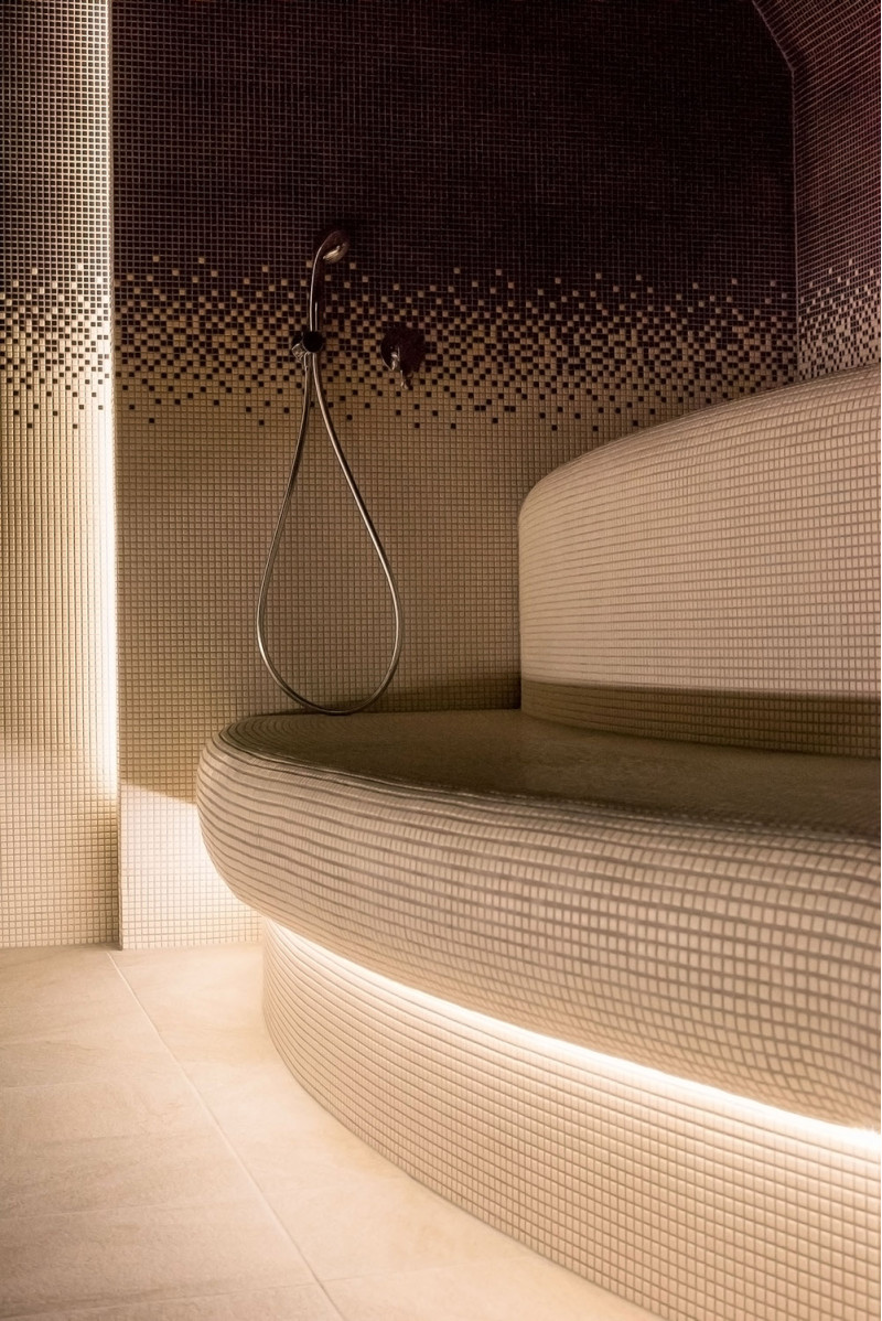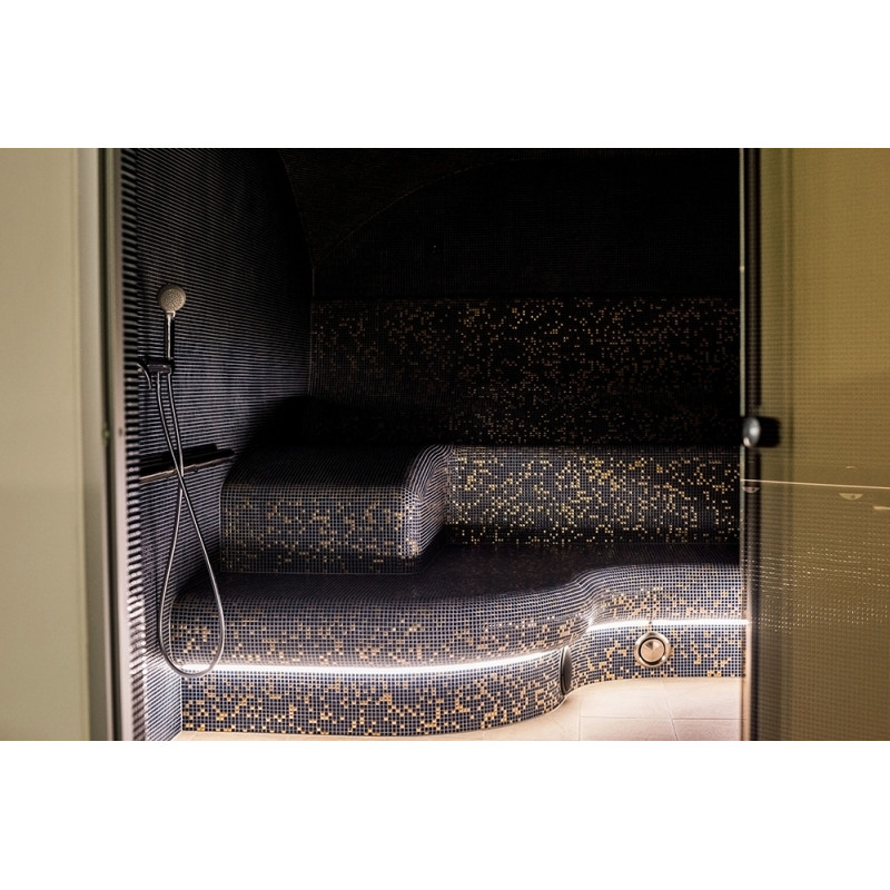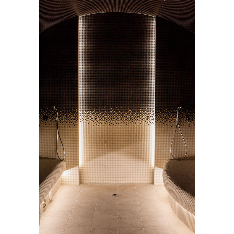 - Zem gultām ir uzstādīti mitruma un temperatūras izturīgi gaismekļi. Aiz Himalaju sāls sienas ir uzstādīts LED apgaismojums.