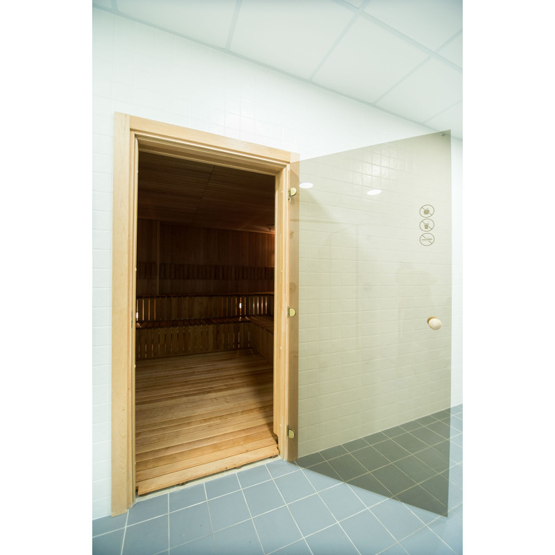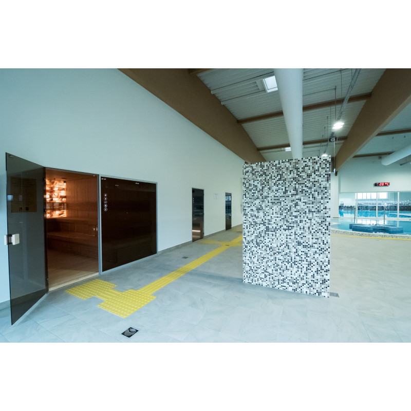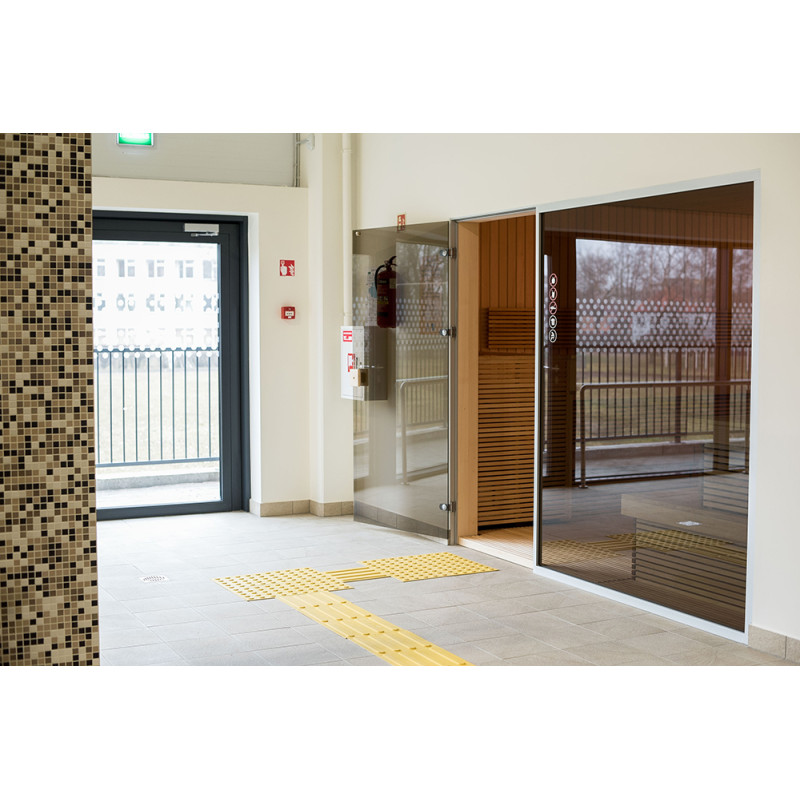 - Stikla durvis - 8 mm rūdīts, tonēts stikls, alumīnija rāmis.