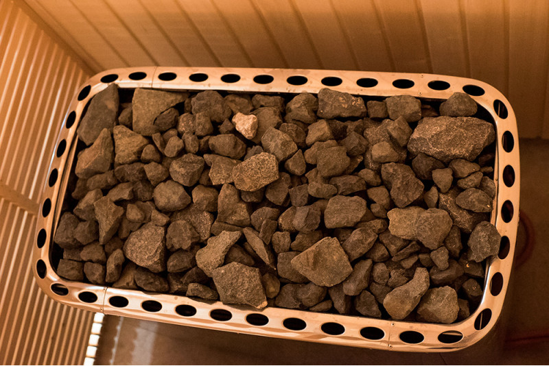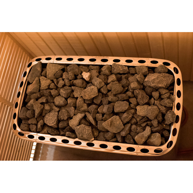 - Plīts ir piepildīta ar 80 kg pirts akmeņiem.