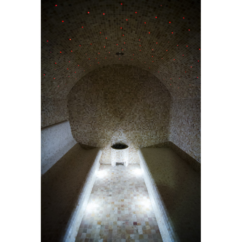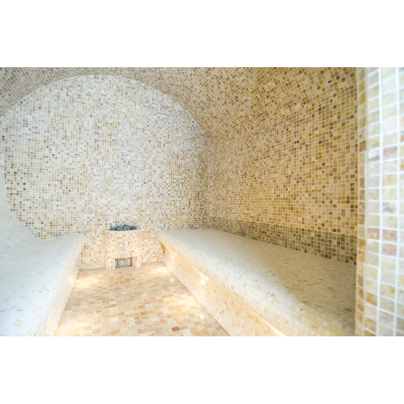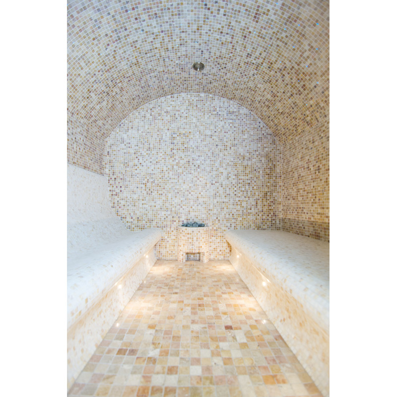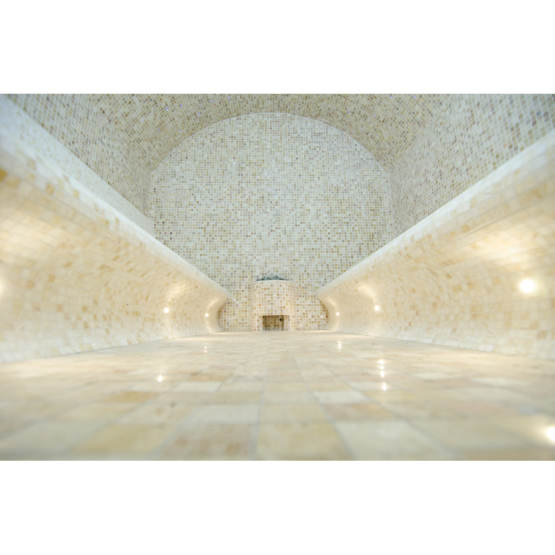 Pēc klienta pieprasījuma pirts gultas ir veidotas divos veidos - pirti var baudīt gan guļus, gan sēdus. Tvaika pirts gultas, sienas un griesti ir izgatavoti individuāli no speciāla ekstrudēta polistirola. Labajā pusē atrodas soliņi sēdēšanai un kreisajā pusē ir soliņi pirts baudīšanai guļot. Arkveida griesti neļauj no tiem pilēt tvaika kondensāciju.