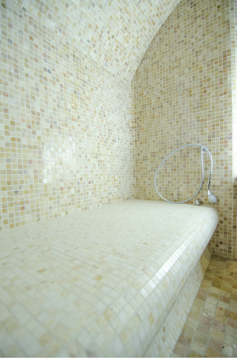 Apdare - visa pirts telpa un soli ir dekorēti ar mozaīkas flīzēm.