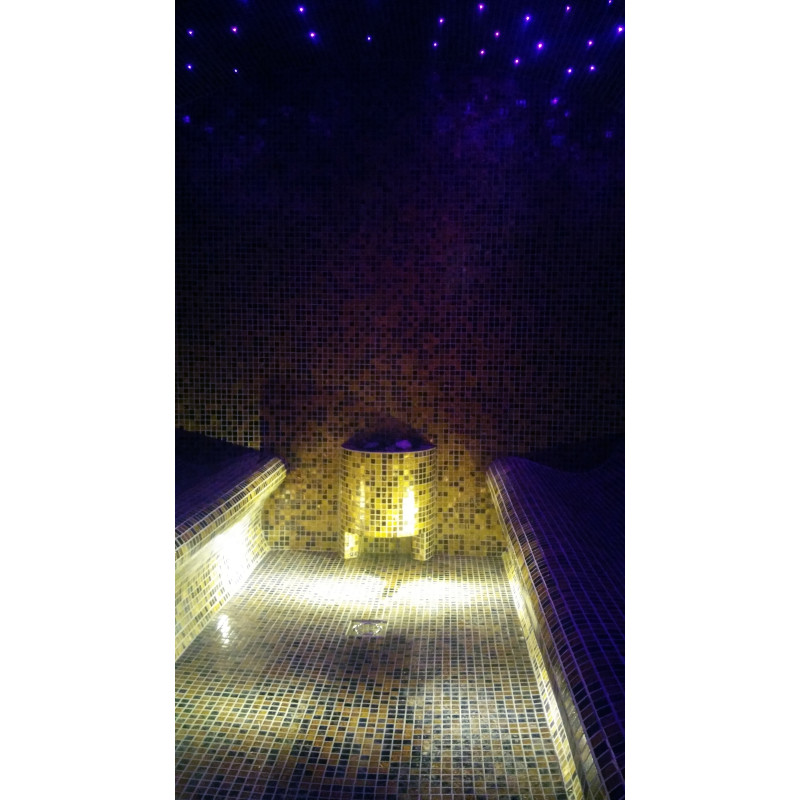 Optisko šķiedru apgaismojuma sistēma griestiem - "zvaigžņotās debesis". Optiskās šķiedras apgaismojums ir ilgmūžīgs, daudzpusīgs, ekonomisks un vienkāršs risinājums. Pateicoties tam, jūs varat iegūt iespaidīgākās apgaismojuma iespējas. Zem soliem - tvaika pirtij pielāgots apgaismojums, lai izgaismotu grīdu.