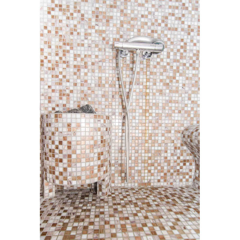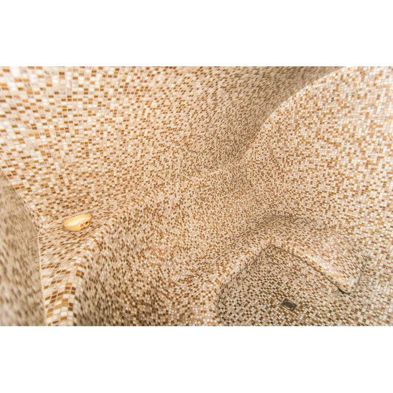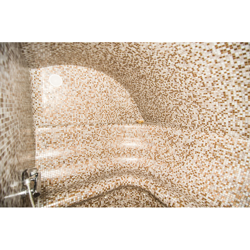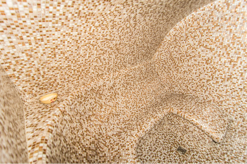 Apdare - neitrālas krāsas šķembas stikla mozaīkas flīzes.