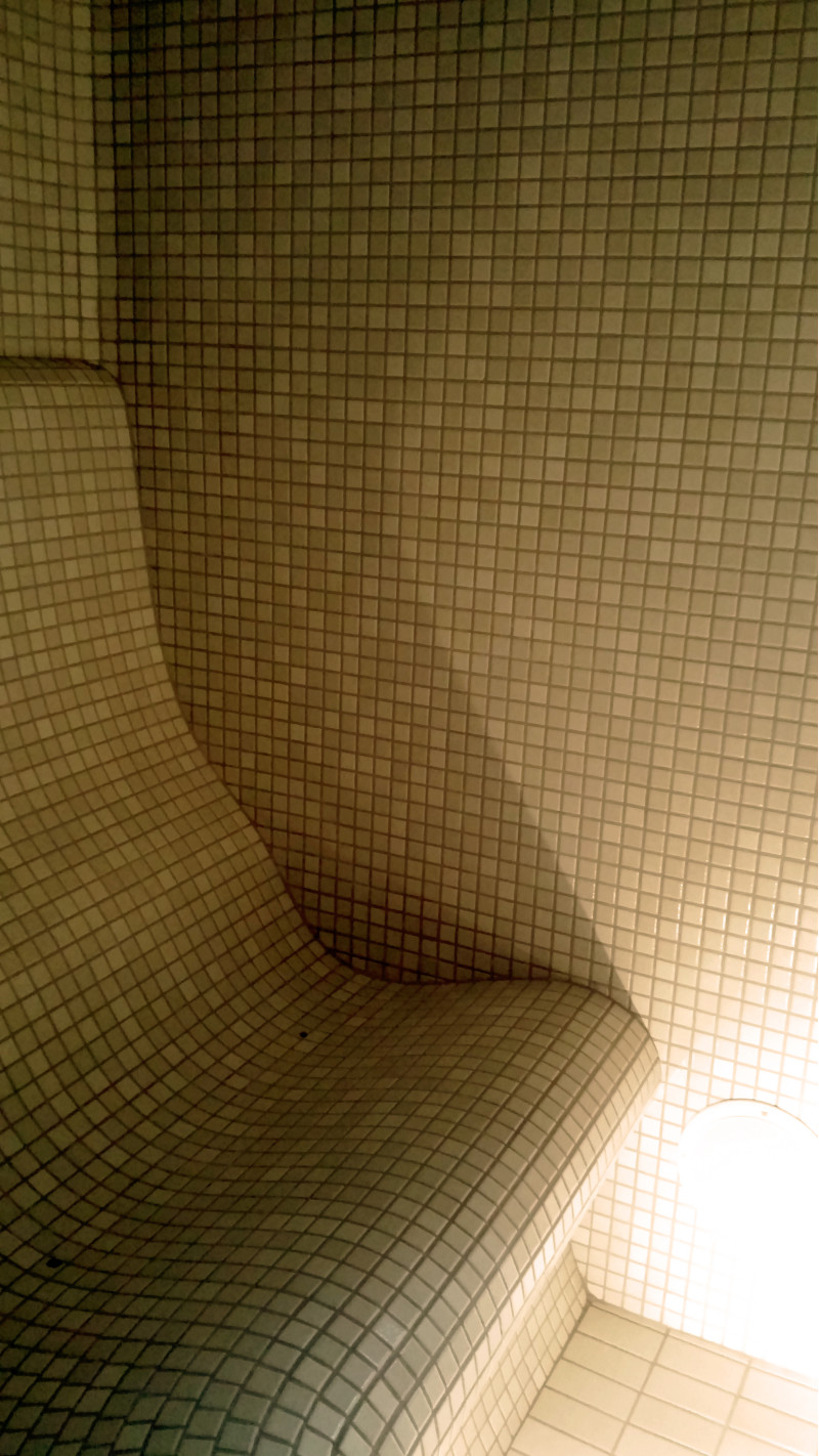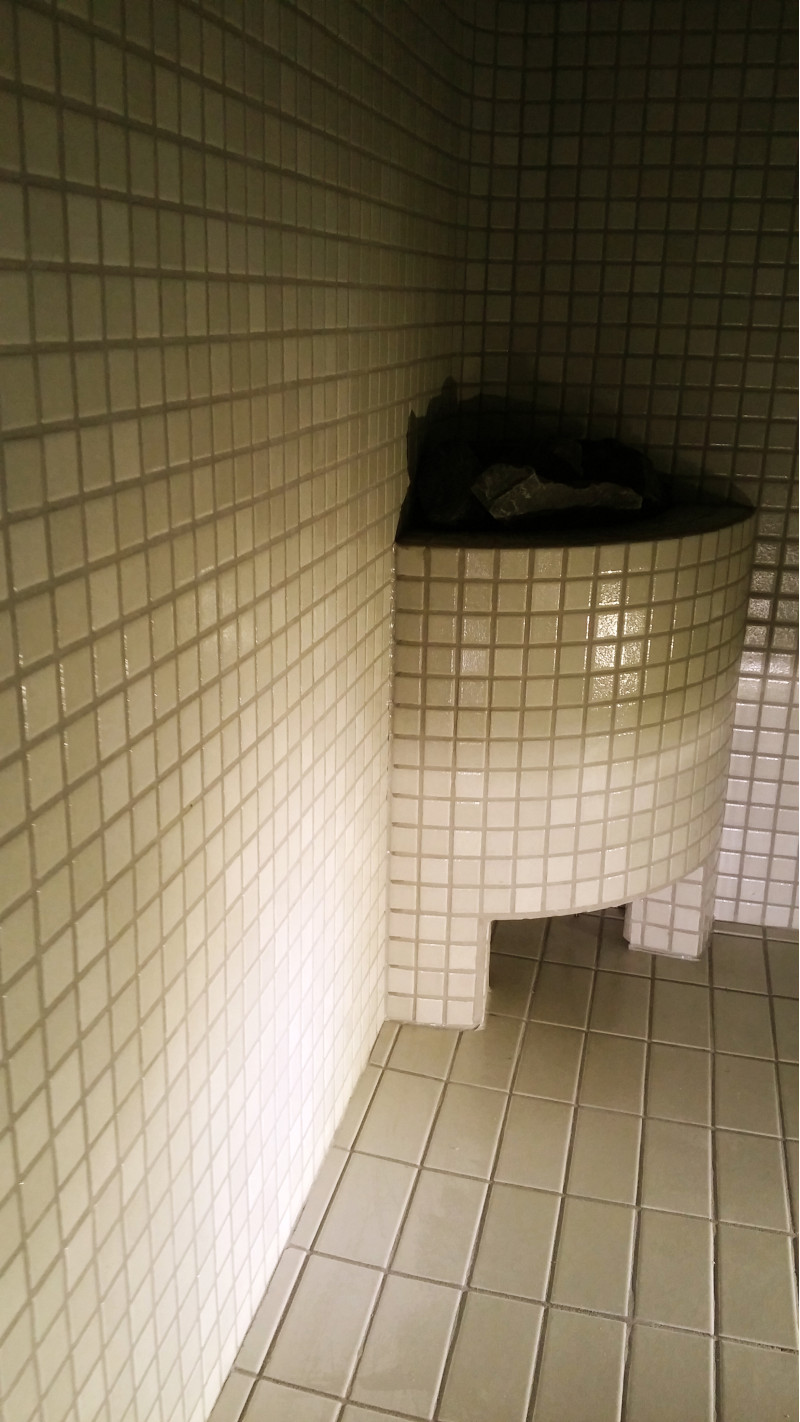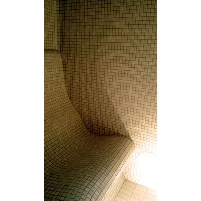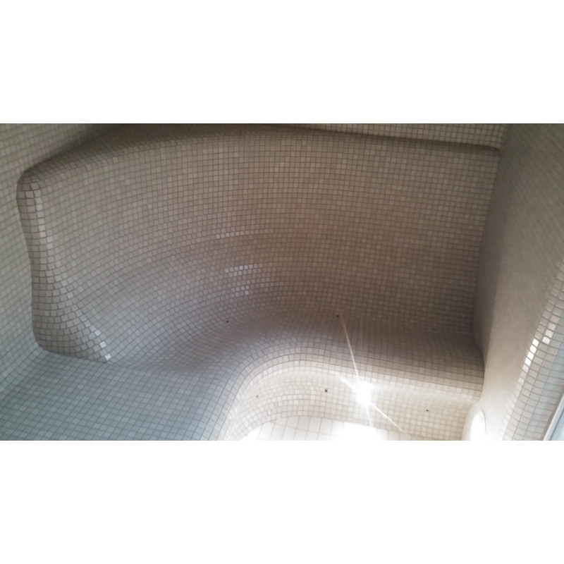 Apdare - pirts griesti, sienas un sauļošanās krēsli ir dekorēti ar šķembu stikla mozaīkas flīzēm. Grīda ir flīze ar ilgmūžību.