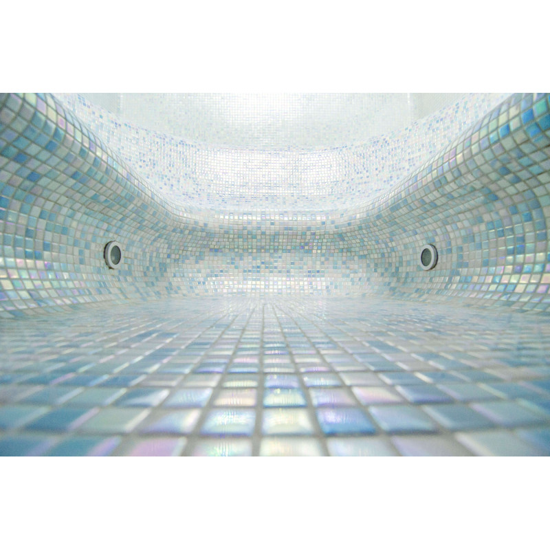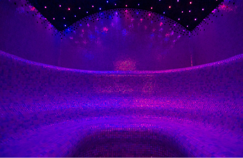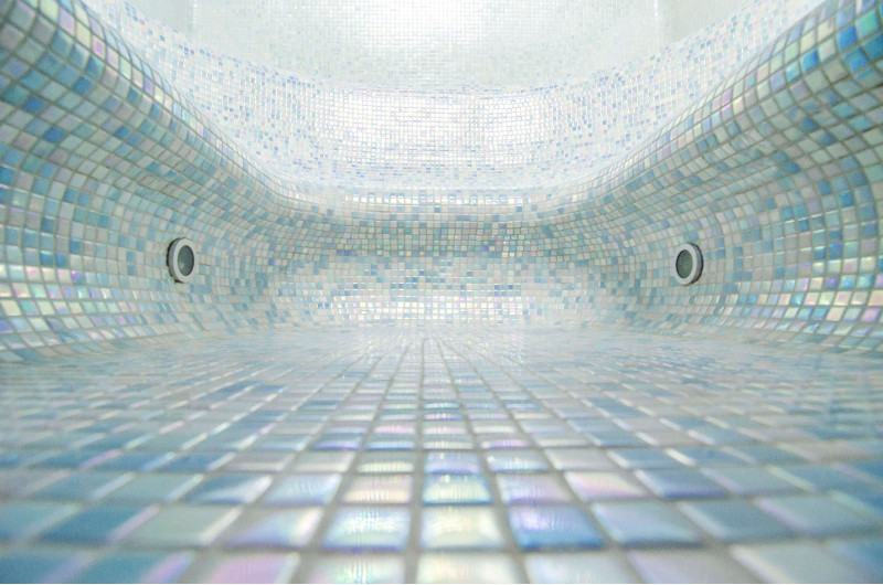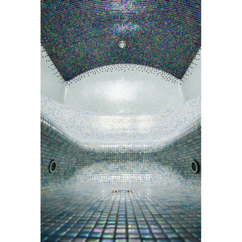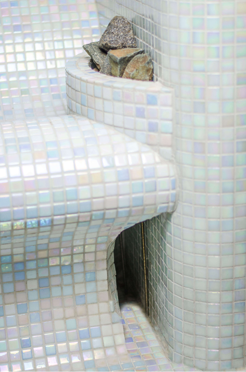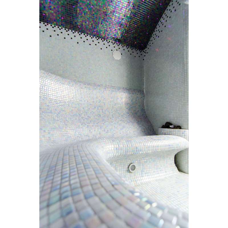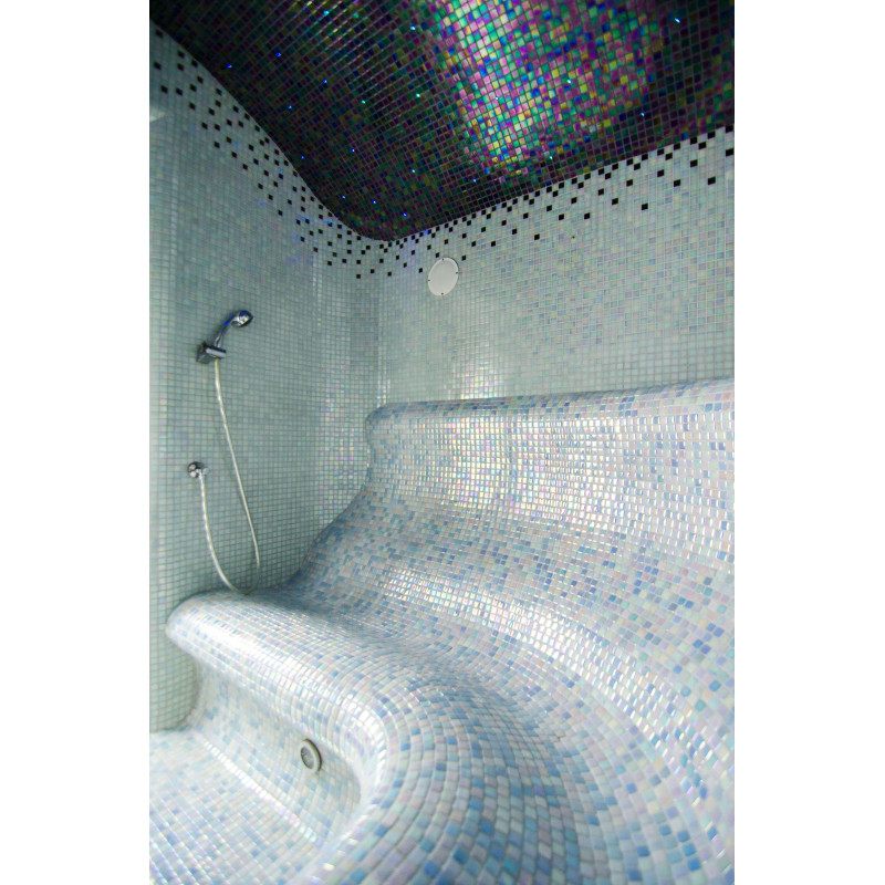 Soliņus, grīdas un sienas rotā pasteļkrāsu mozaīkas flīzes. Griesti klāti ar krāsainām flīzēm, kas kopā ar griestu apgaismojumu sniedz vēl iespaidīgāku skatu.