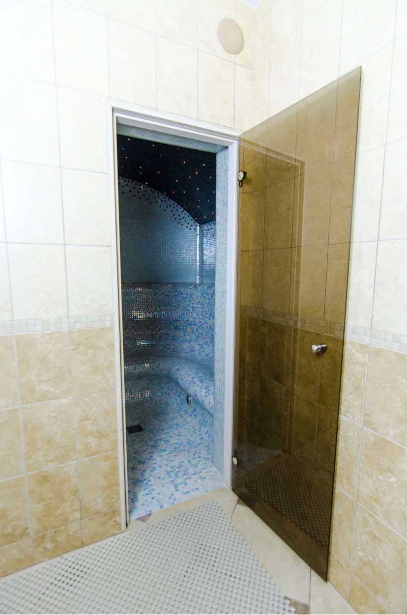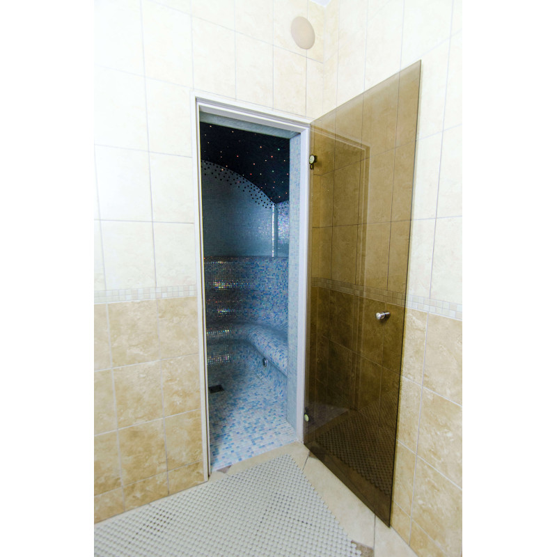 Stikla durvis tiek izgatavotas pēc individuāla pasūtījuma. Durvis ir izturīgas pret mitrumu un temperatūras svārstībām. Durvju rāmis - marmors.